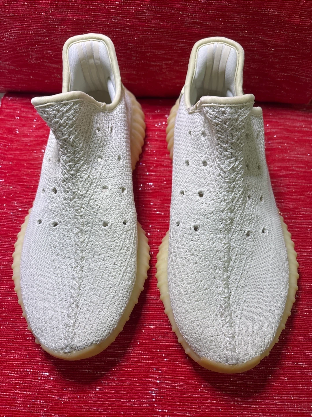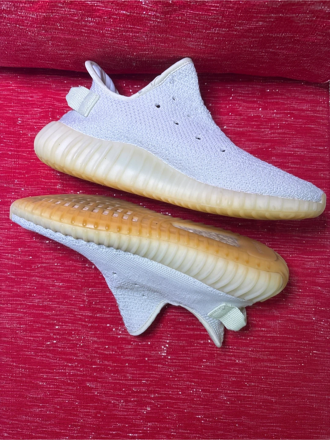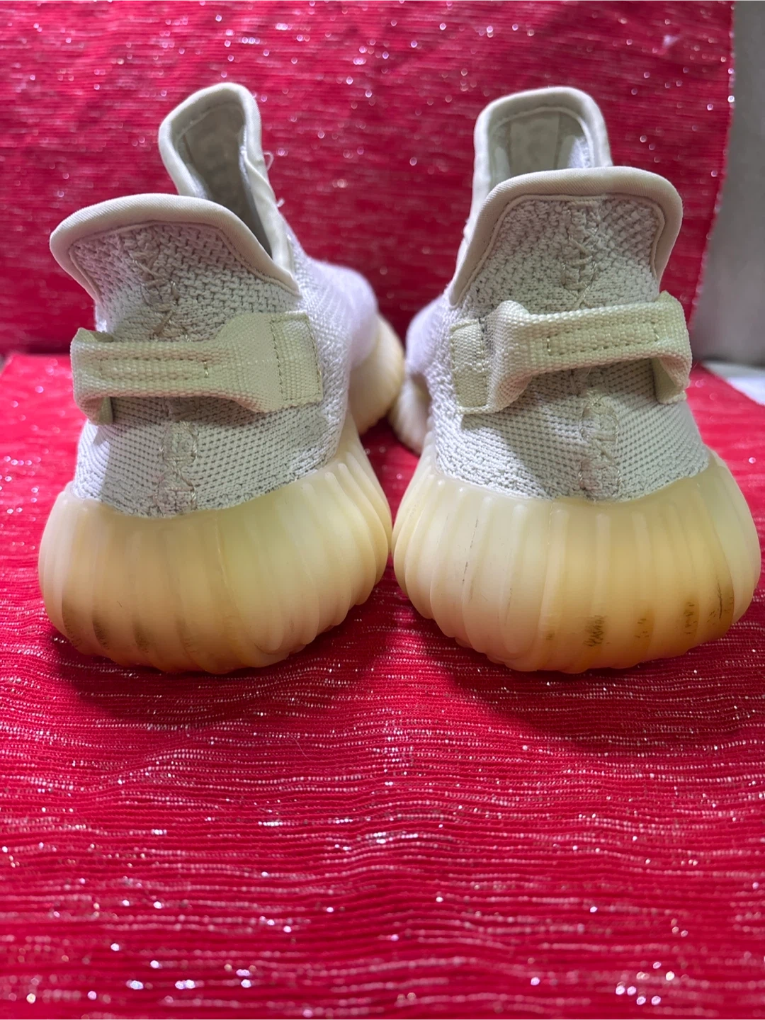 Selling a pair of Adidas Yeezy Boost 350 V2 sneakers. They are in men US size 8. The manufacturing date on the tag is 2018 March Used Still good