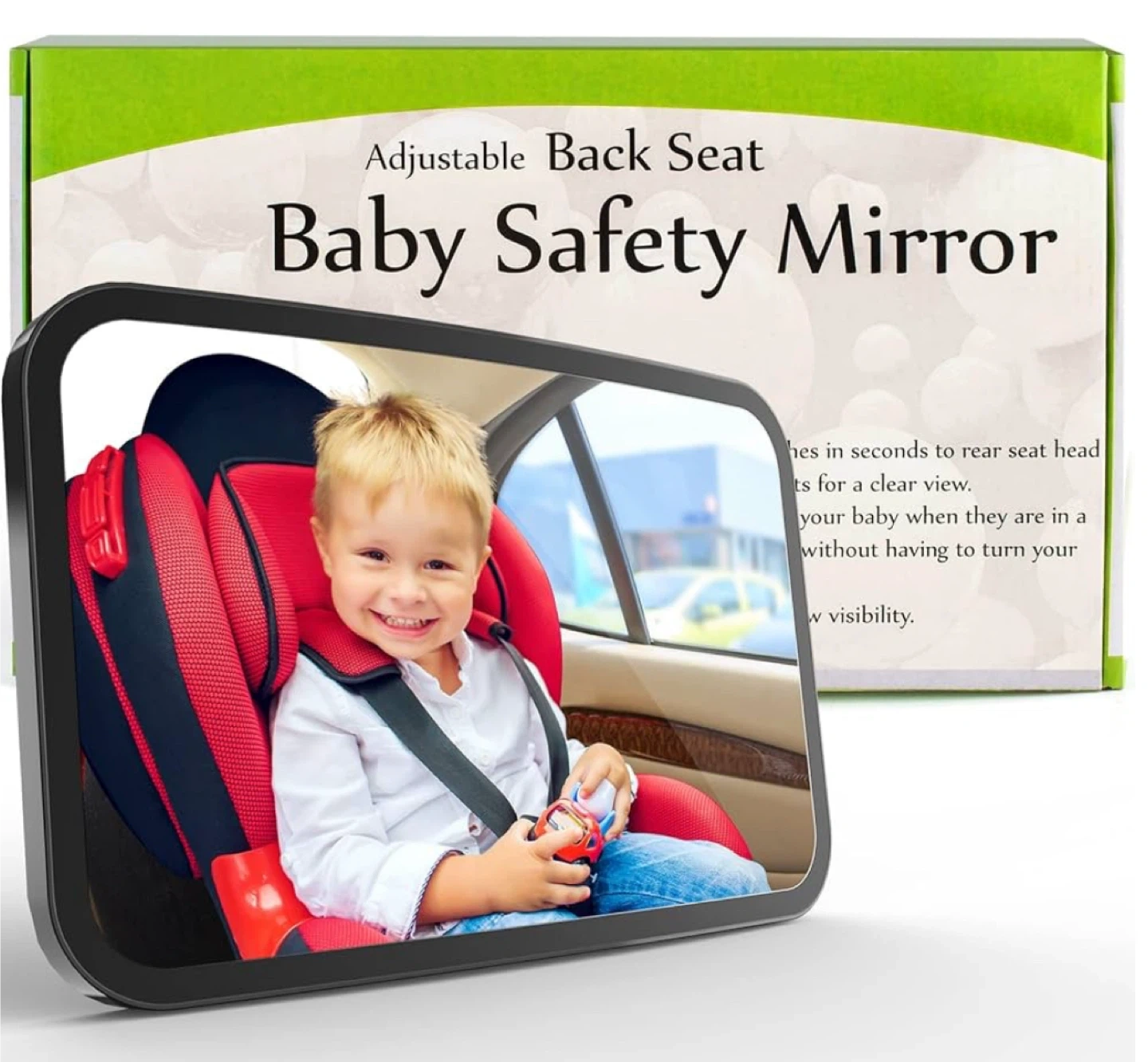 104Baby Car Seat Mirror comes fully assembled. Its 360° clear view lets you check on your baby while driving. A must-have baby carseat accessories. Features: ▫️360 wide crystal clear view large shatterproof baby car mirrors ▫️Stable & adjustable baby car mirror ▫️Fully assembled and easy installation ❗️Brand new in box, never opened