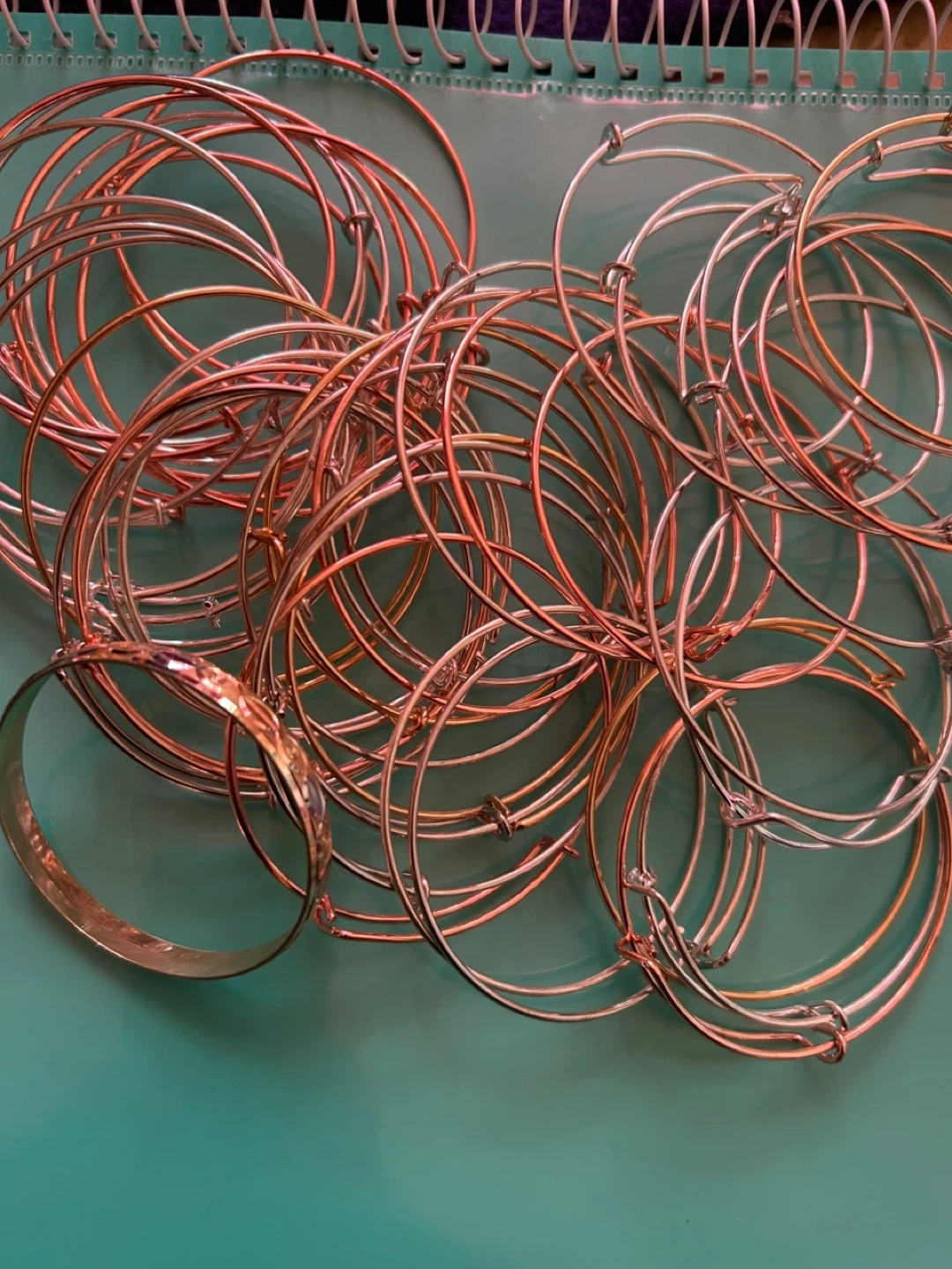 76Selling a lot of adjustable bangle bracelets! They appear to be in good condition and ready for new charms or to be worn as is