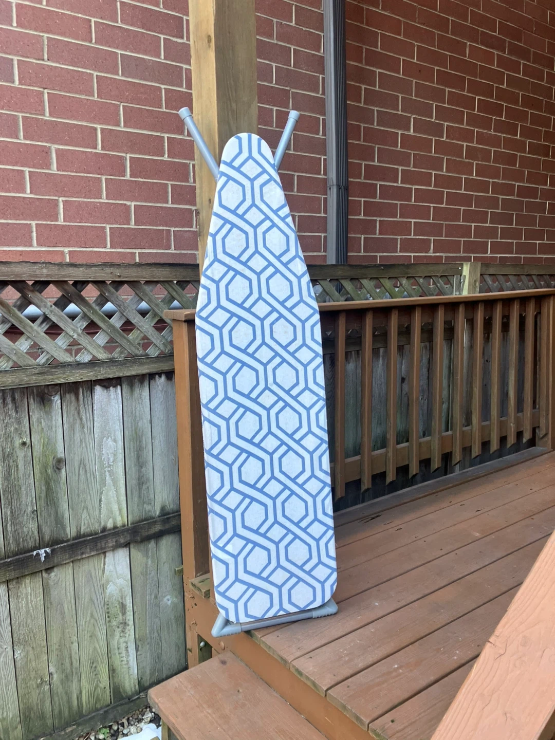 94Adjustable Height Metal Ironing Board - Excellent Condition Fully collapsible metal ironing board is in excellent working condition. Fully adjustable to any height for comfortable use. Ironing surface measures 54” x 14”. Cover shows normal wear with some light water stains. The pictures were taken outdoors for best lighting and color representation. From a smoke and pet free home. Check out in person before purchasing. Thanks for looking.