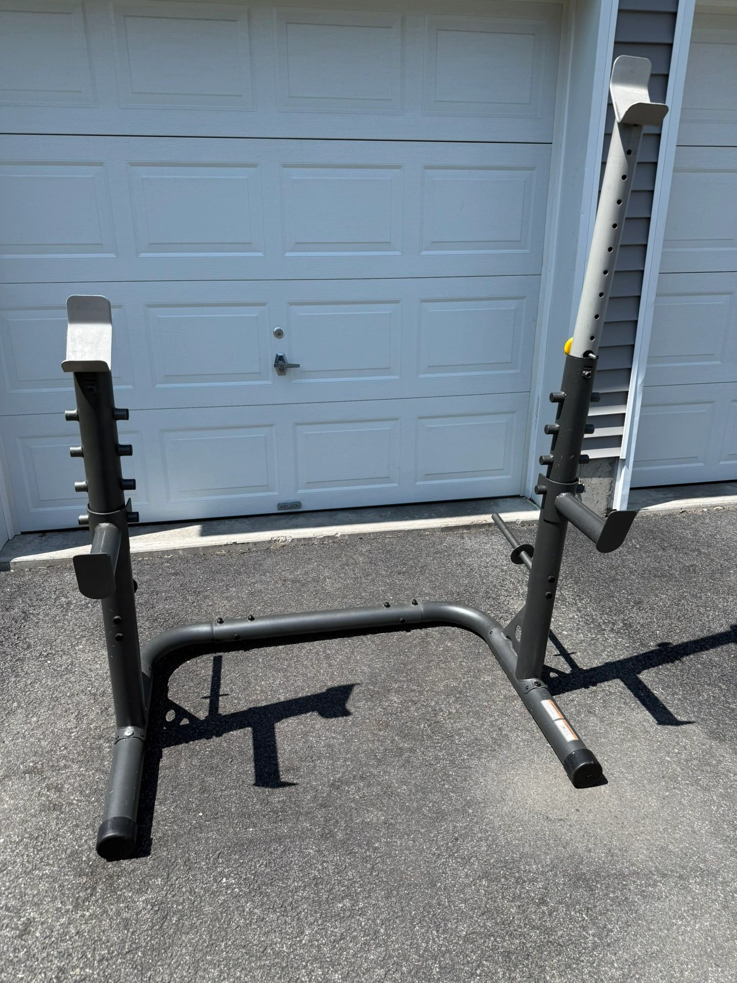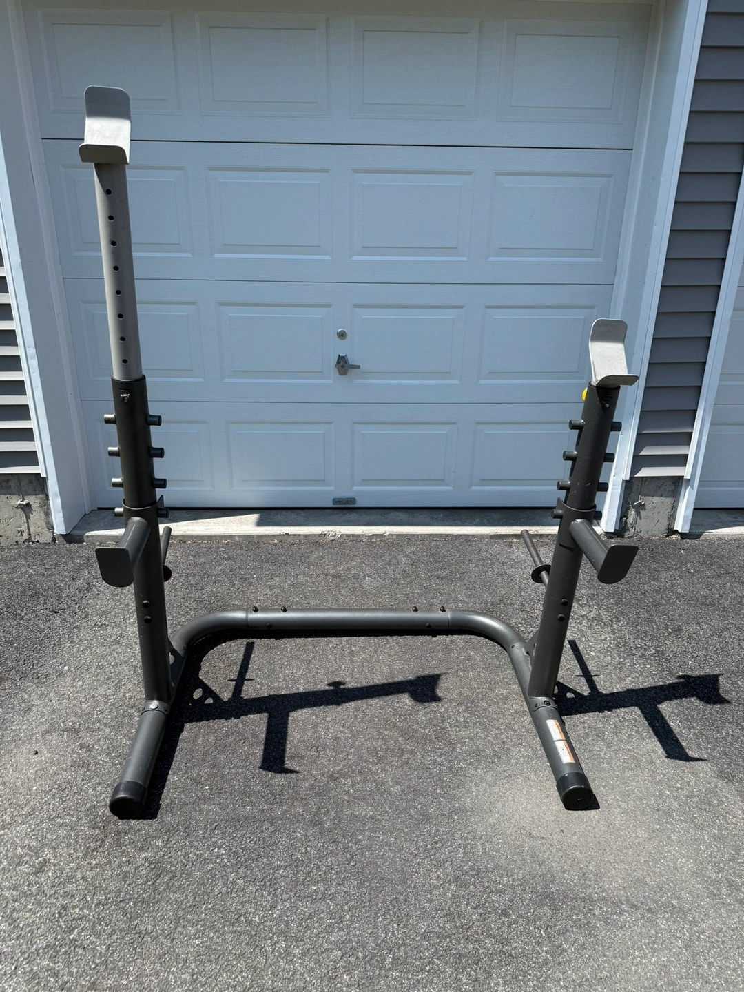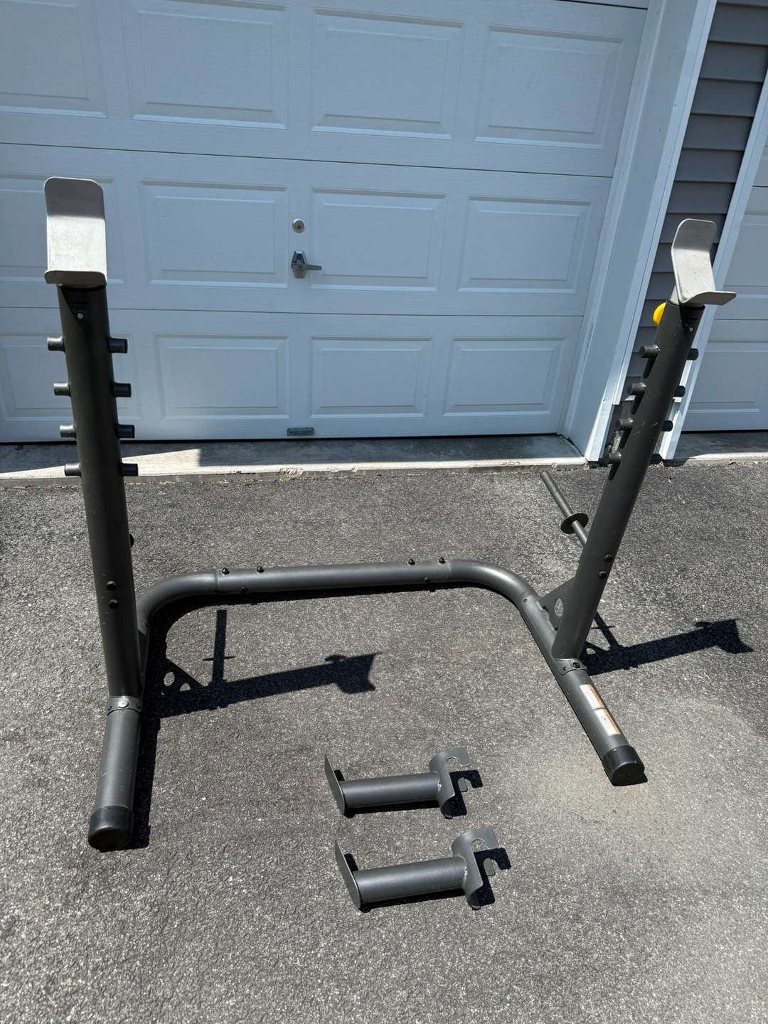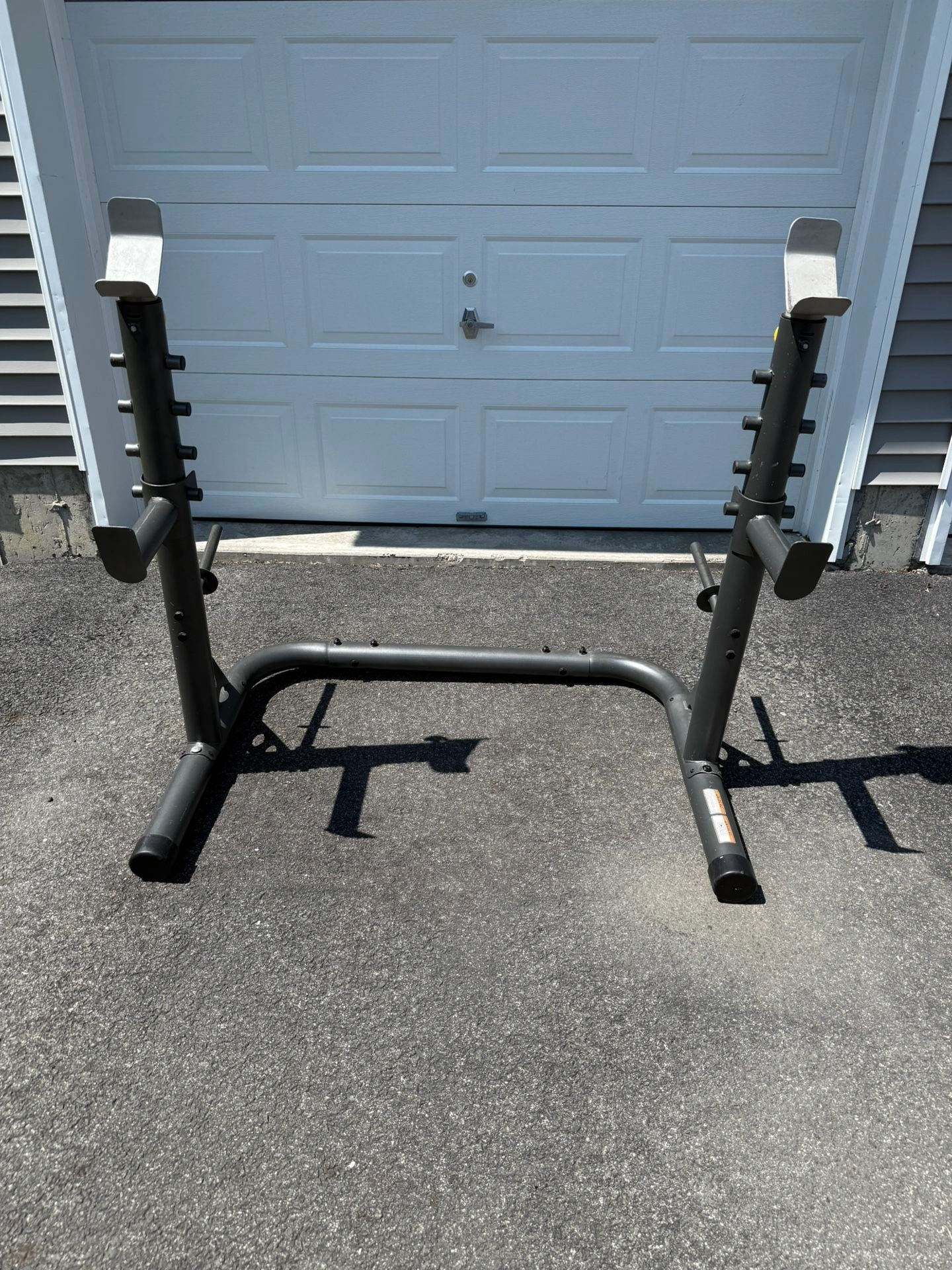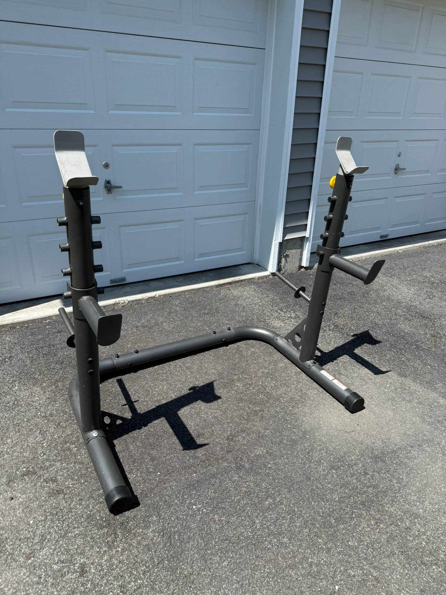 15Fully adjustable squat and bench press rack in phenomenal condition. Comes with spotter arms. Excellent for gyms with low ceilings as the arms are telescopic and can go up and down as opposed to the regular racks that are always the same height all the time. Footprint is 4’ wide, 2’ 8” deep. Will be broken down at time of pick up for easy transport. Goes back together very easily. Stations: Power rack