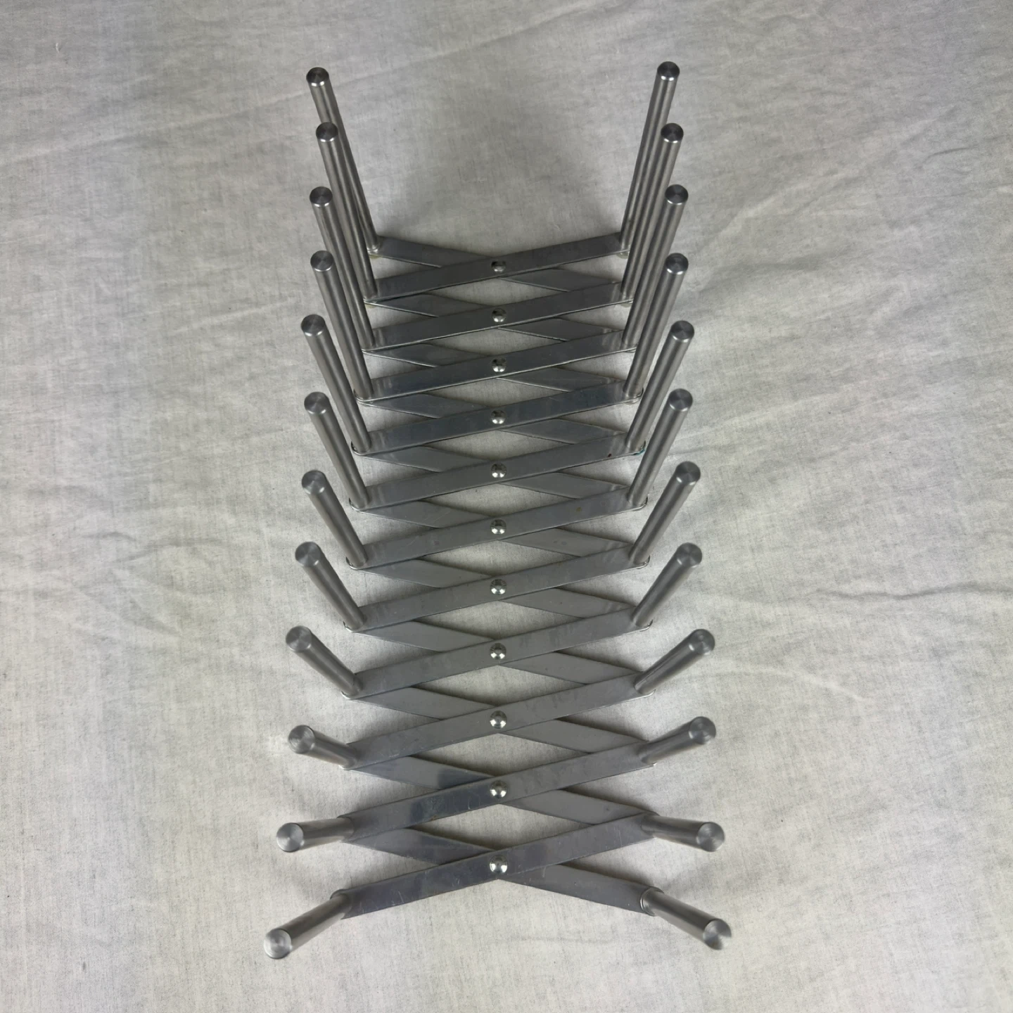 93This is an adjustable stainless steel plate rack. It's perfect for organizing your plates and keeping them neat and tidy. The rack is in great condition and ready for a new home