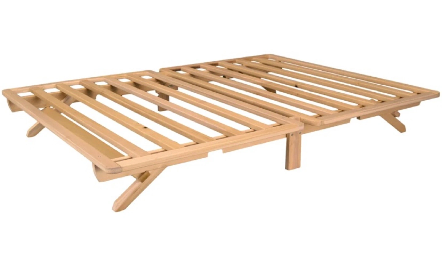 Selling a wooden adjustable bed frame. It's in great condition and ready for a new home! This frame is perfect if you're looking for something sturdy and versatile. The natural wood finish will complement any bedroom decor