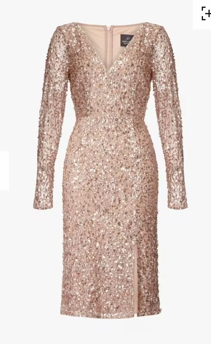 This is a beautiful sequin dress from Adrianna Papell. It features long sleeves and a flattering silhouette. Perfect for a special occasion!