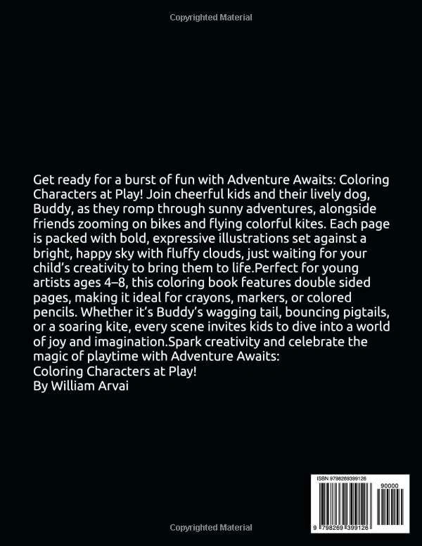 You can buy direct from amazon - https://www.amazon.com/dp/B0FW4G5Q7V Dive into a world of joy and imagination with *Adventure Awaits: Coloring Characters at Play*! This delightful coloring book is perfect for young artists ages 4–8, featuring vibrant, engaging scenes of happy children and their playful adventures. Follow a 6-year-old with a wild mop of curly brown hair and a beaming smile as they walk their energetic dog, Buddy, whose tail wags like a whirlwind and whose colorful collar shines with a playful name tag. Join a bike-riding child with bouncing pigtails, their face glowing with excitement, and a kite-flying friend with wind-tousled blonde locks, grinning as their kite dances in the sky. Set against a cheerful, sunny backdrop with fluffy white clouds and a warm, gradient blue sky, each page bursts with bold lines and expressive characters that invite kids to bring the scenes to life with color. The whimsical, child-friendly title font and approachable designs create a sense of fun and freedom, perfect for sparking creativity. Whether coloring the lively dog, the soaring kite, or the winding paths, young readers will feel like they’re part of the adventure! Product Details: Age Range: 4–8 years Pages: 42 pages Dimensions: 8.5 x 11 inches Features: Double sided pages, ideal for crayons, or colored pencils Perfect For: Creative kids, birthday gifts, rainy day activities, or classroom fun Let your child’s imagination soar with *Adventure Awaits: Coloring Characters at Play*—a coloring book that celebrates the joy of childhood adventures! #KarrotPlatform #ColoringBook #AdventureAwaits #YoungArtists #CreativeKids #ColoringFun #Imagination #PlayfulAdventures #KidsActivities #ArtForKids