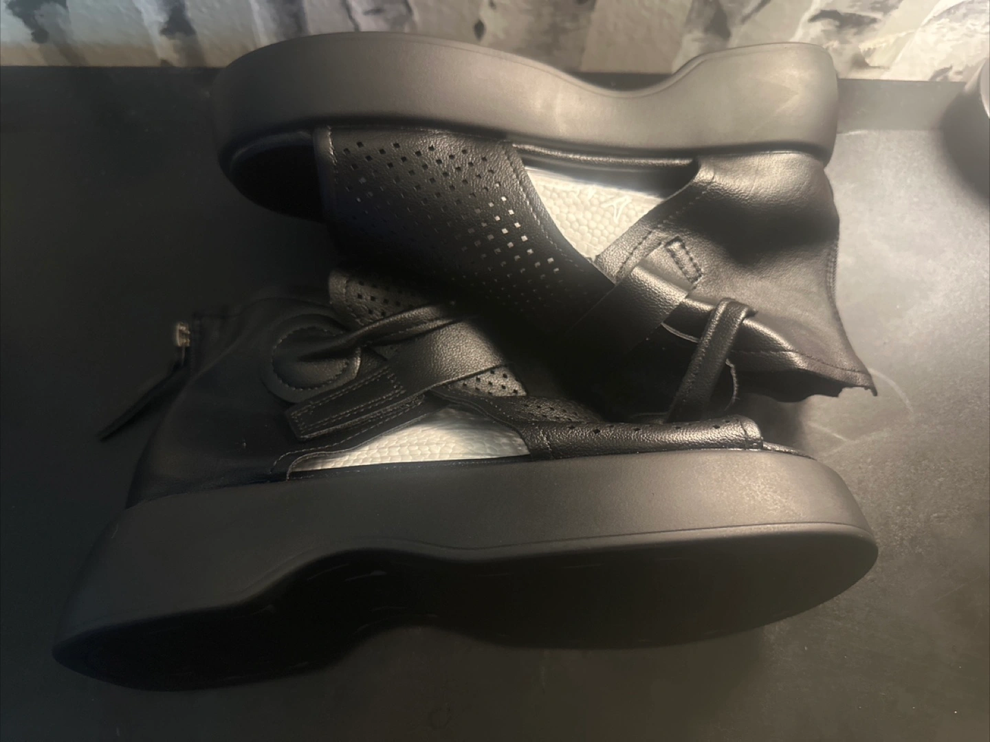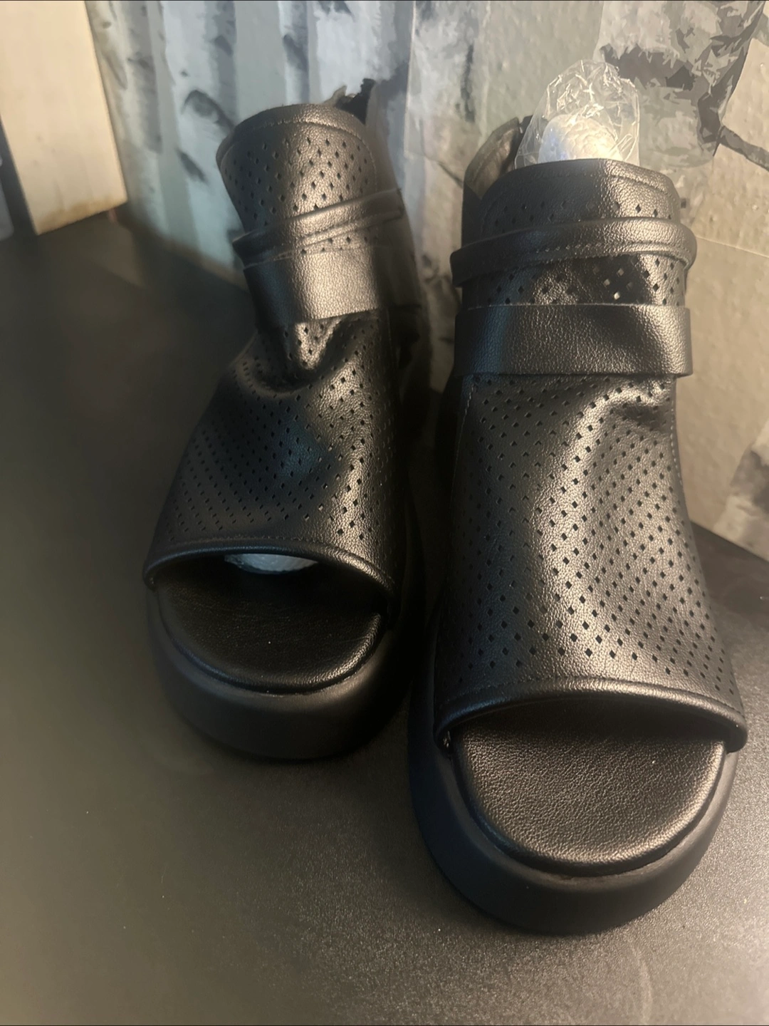 These black platform sandals are in great condition and ready for a new home! They feature a stylish, chunky sole and a comfortable, open-toe design. Perfect for adding a bit of edge to any outfit!