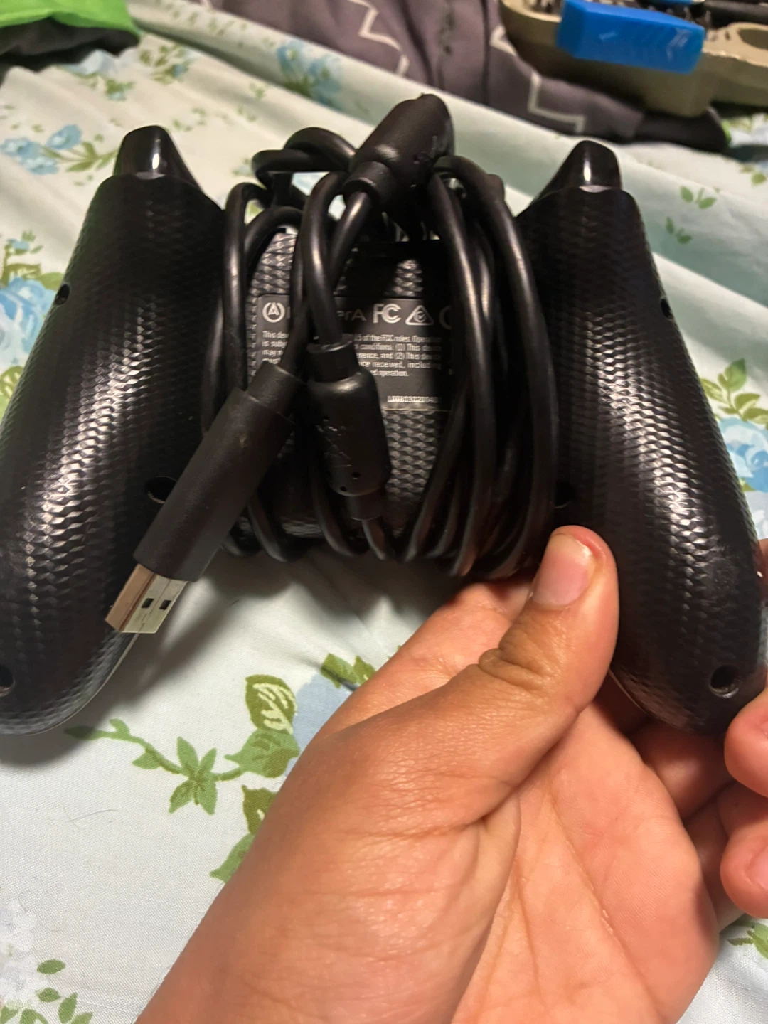 This is a wired controller for Xbox. It's white with a textured grip and has the standard A, B, X, Y buttons. Includes the USB cable for connection.