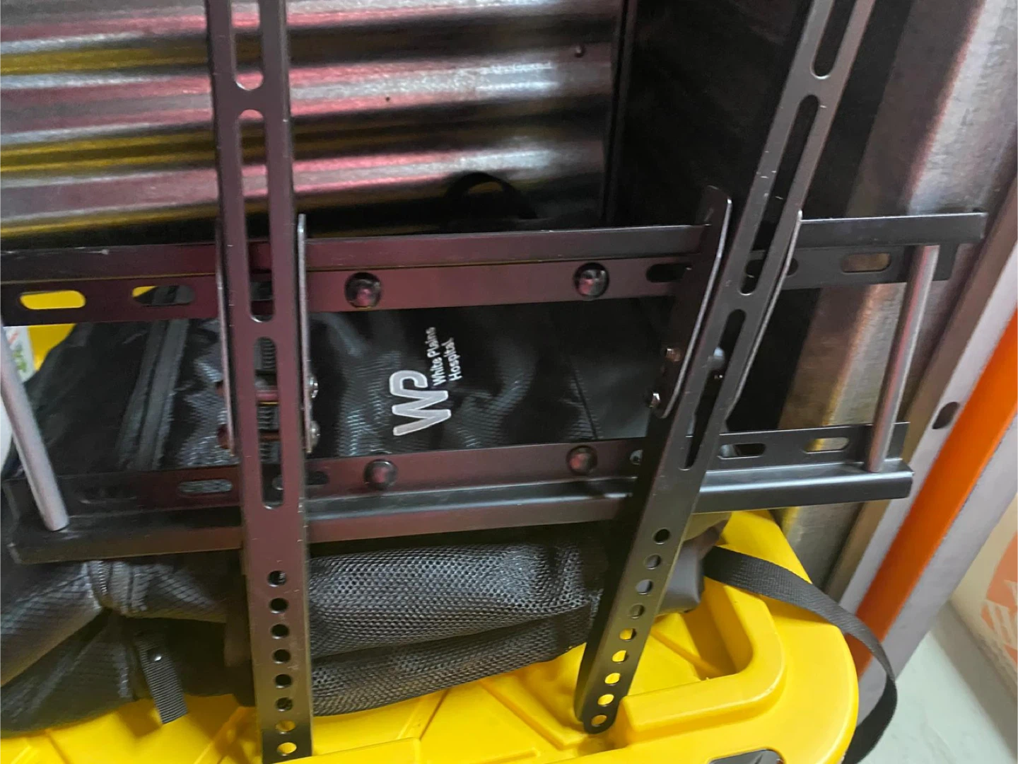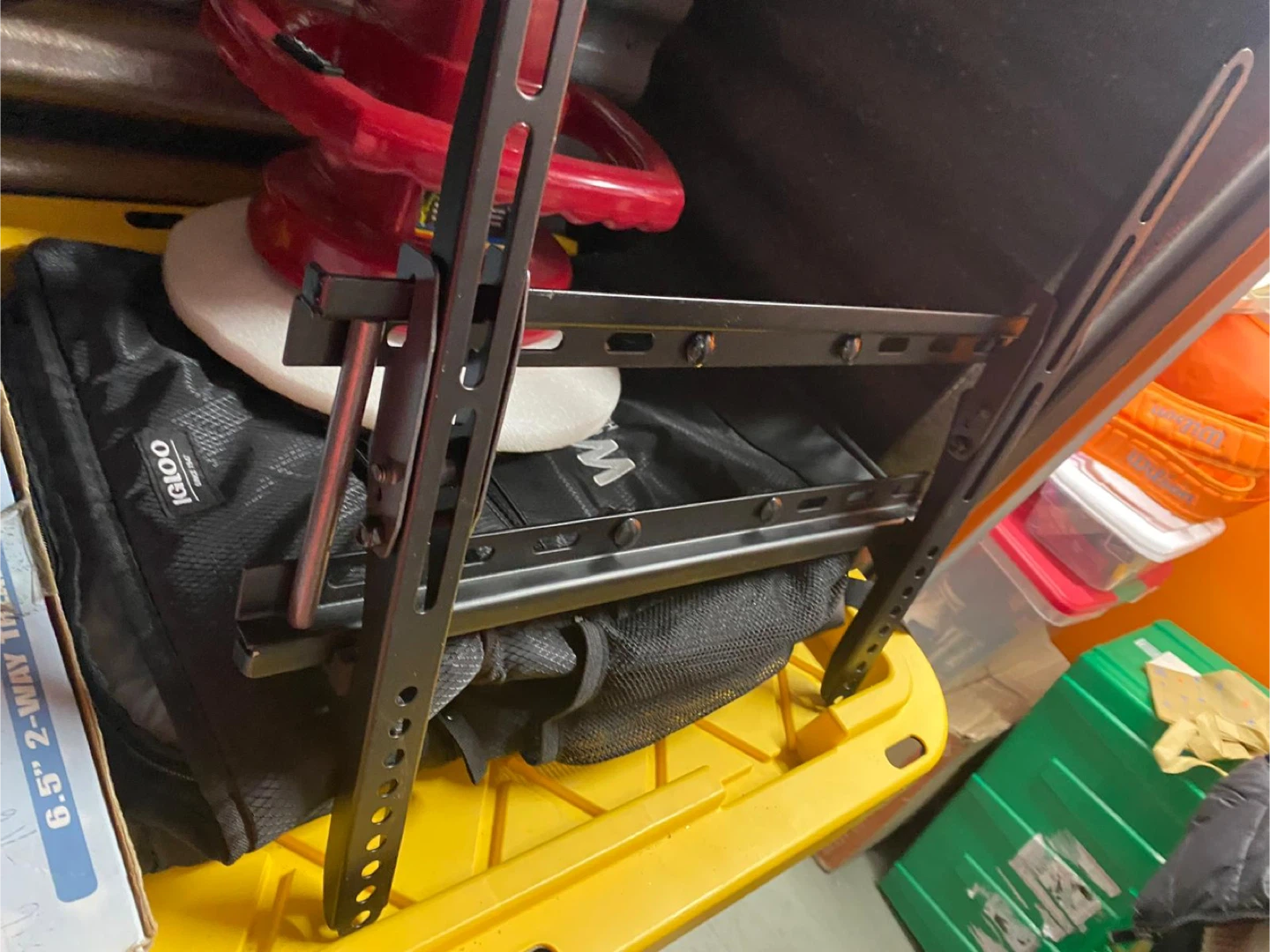 This is a TV wall mount bracket. It's made of black metal. It's designed to hold televisions securely on a wall.