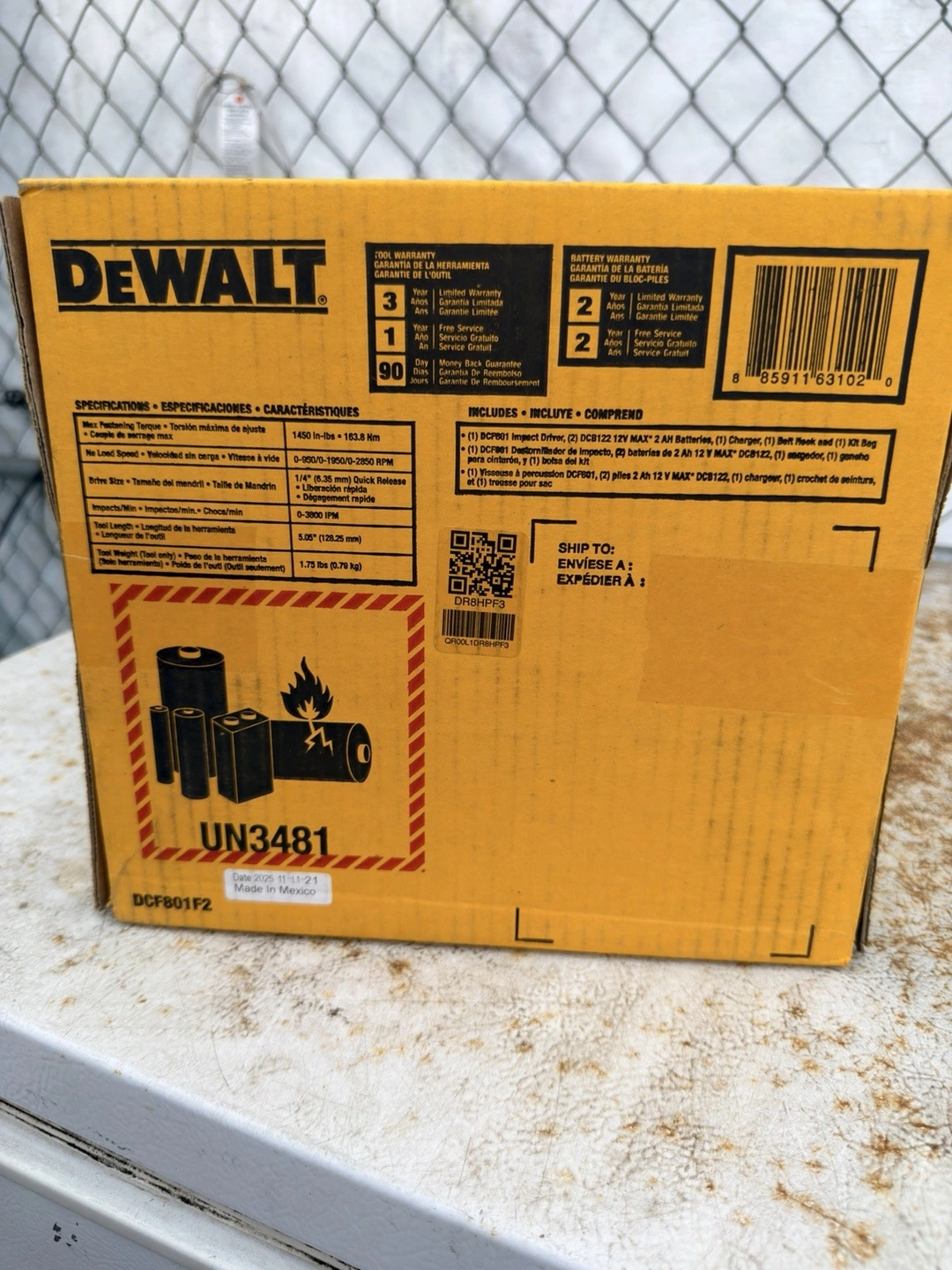 This is a DEWALT 12V Brushless Impact Driver Kit. It includes 2 batteries (2 Ah Li-Ion), a battery charger, a case, and a belt hook. The driver features keyless chuck, compact design, and heavy-duty build. Max Torque: 1450-1858 in-lbs. Speed: 0-950/1950/2850 RPM. Chuck Size: 1/4 in. Item Weight: 1.75 lbs. Feel free to message if you have any questions!