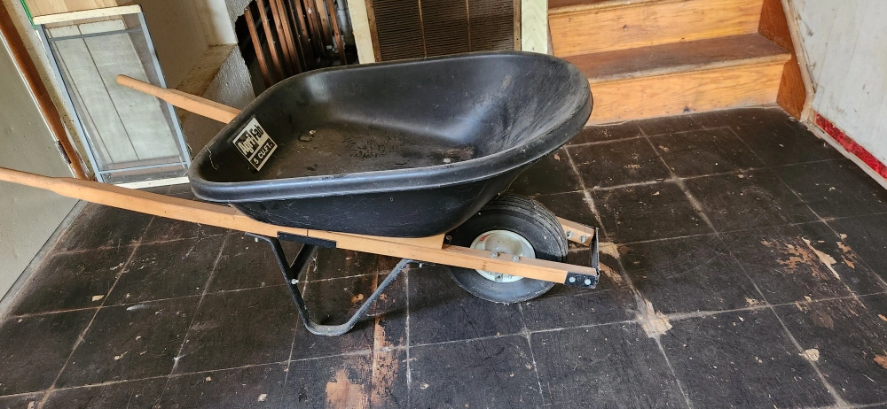 Selling an Agri-Fab wheelbarrow with a 5 cu. ft. capacity. It's sturdy and ready for your gardening or landscaping projects