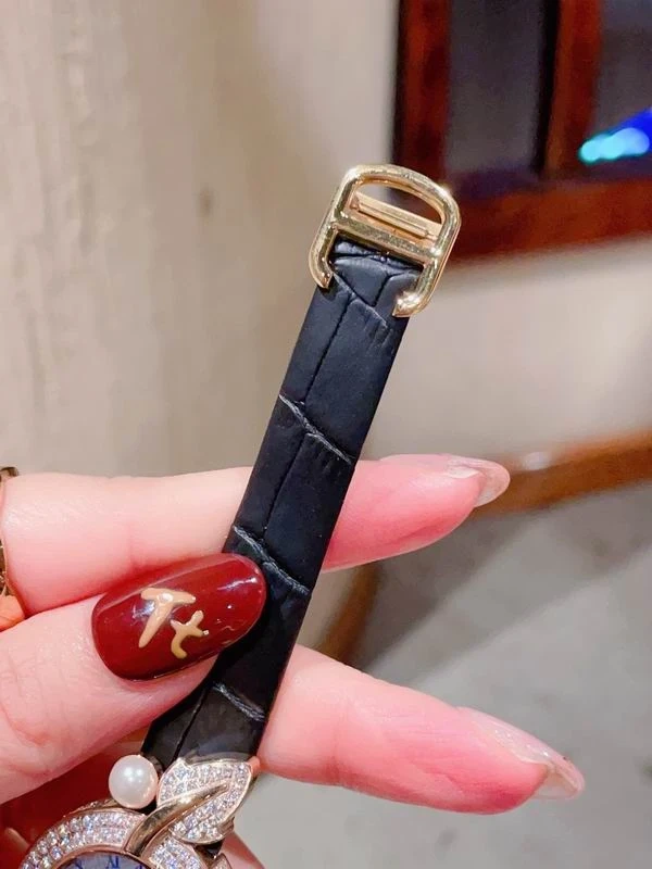Displaying 2 different ones for sale. Same price. Just Let me know which one you're interested in. Elegant Cartier watch featuring a diamond-encrusted bezel and face. Both have a black leather strap with pearl accents. Blue π΅ Roman numerals mark the hours on the white dial. This timepiece adds a touch of luxury to any outfit!