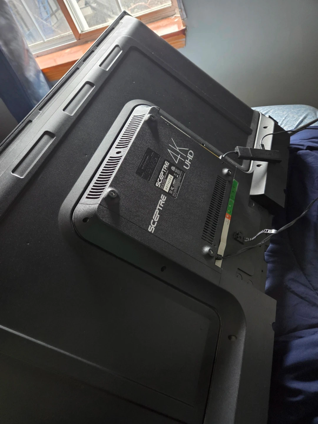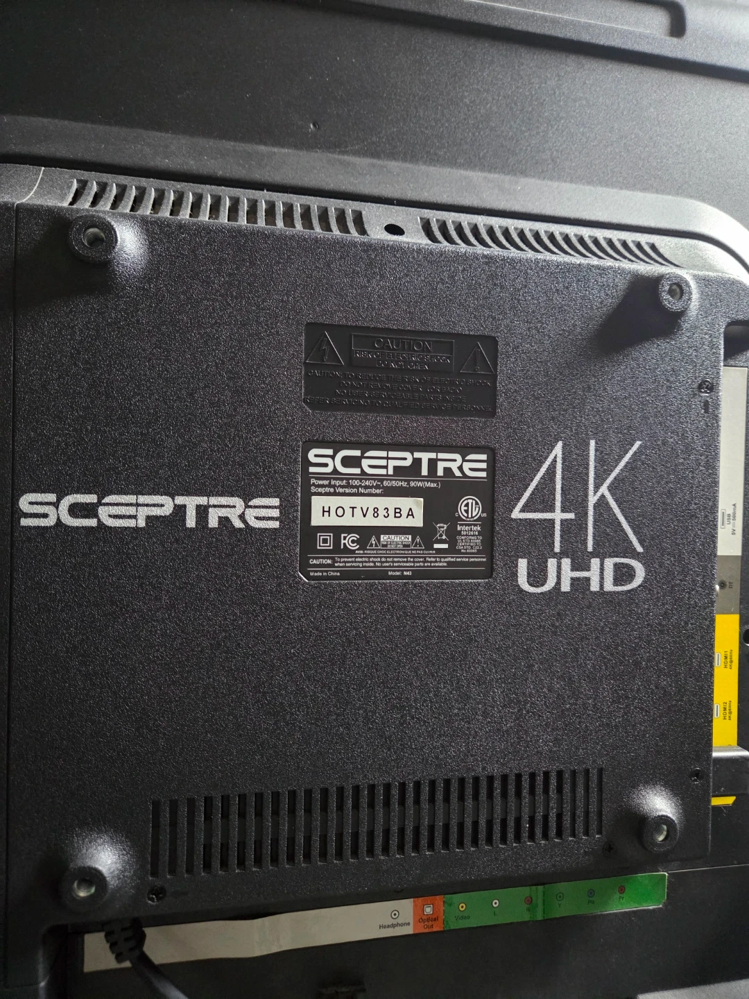Sceptre 4K UHD television. Model HOTV83BA. It's not a smart tv, its a regular TV, in order to use 4k you will need a hdmi 4k cable the model of the TV is in the back of the TV if you wanna look up, it 43inch, amazon fire stick not included