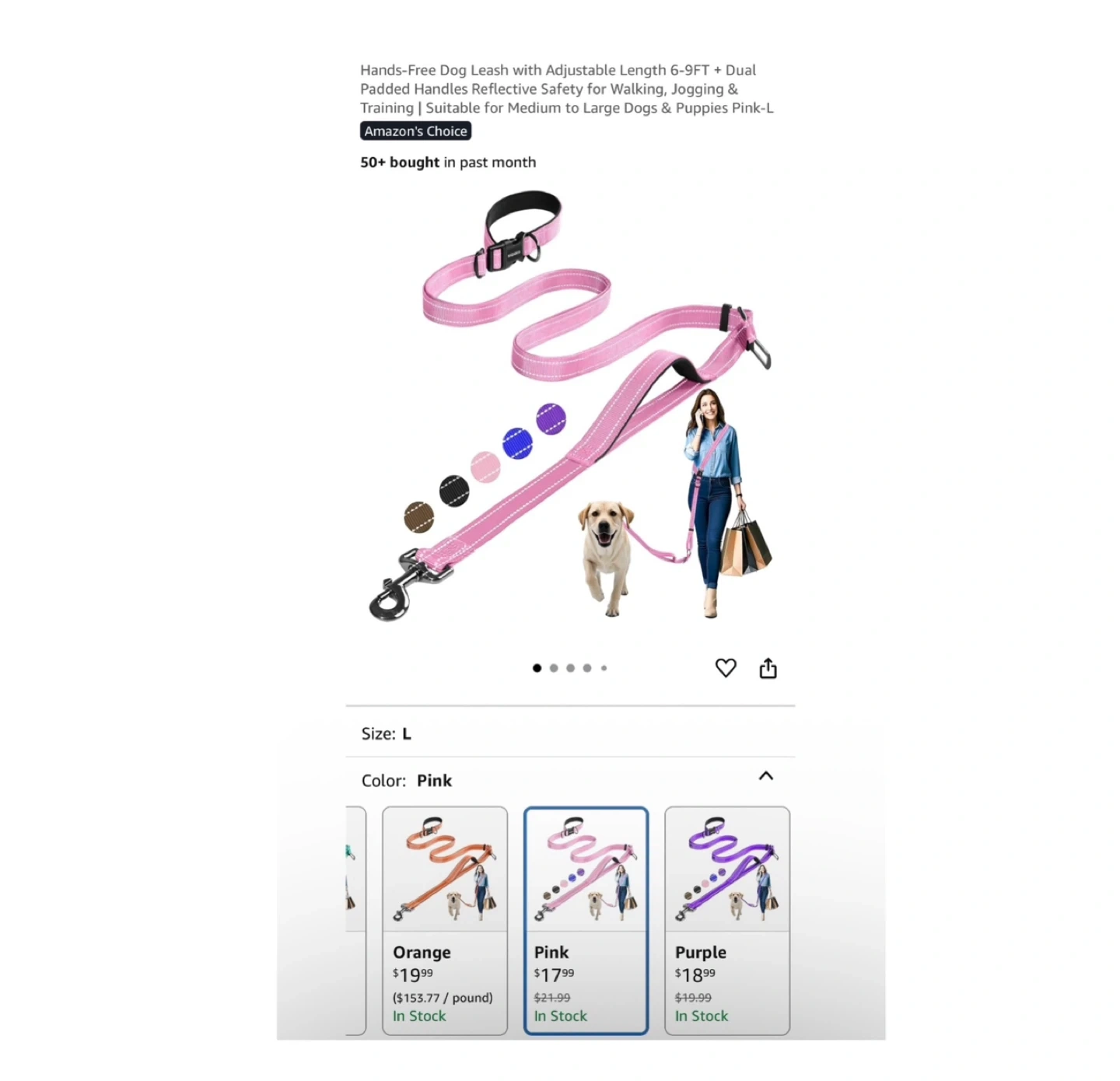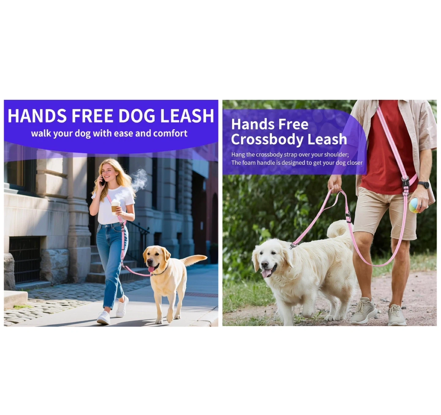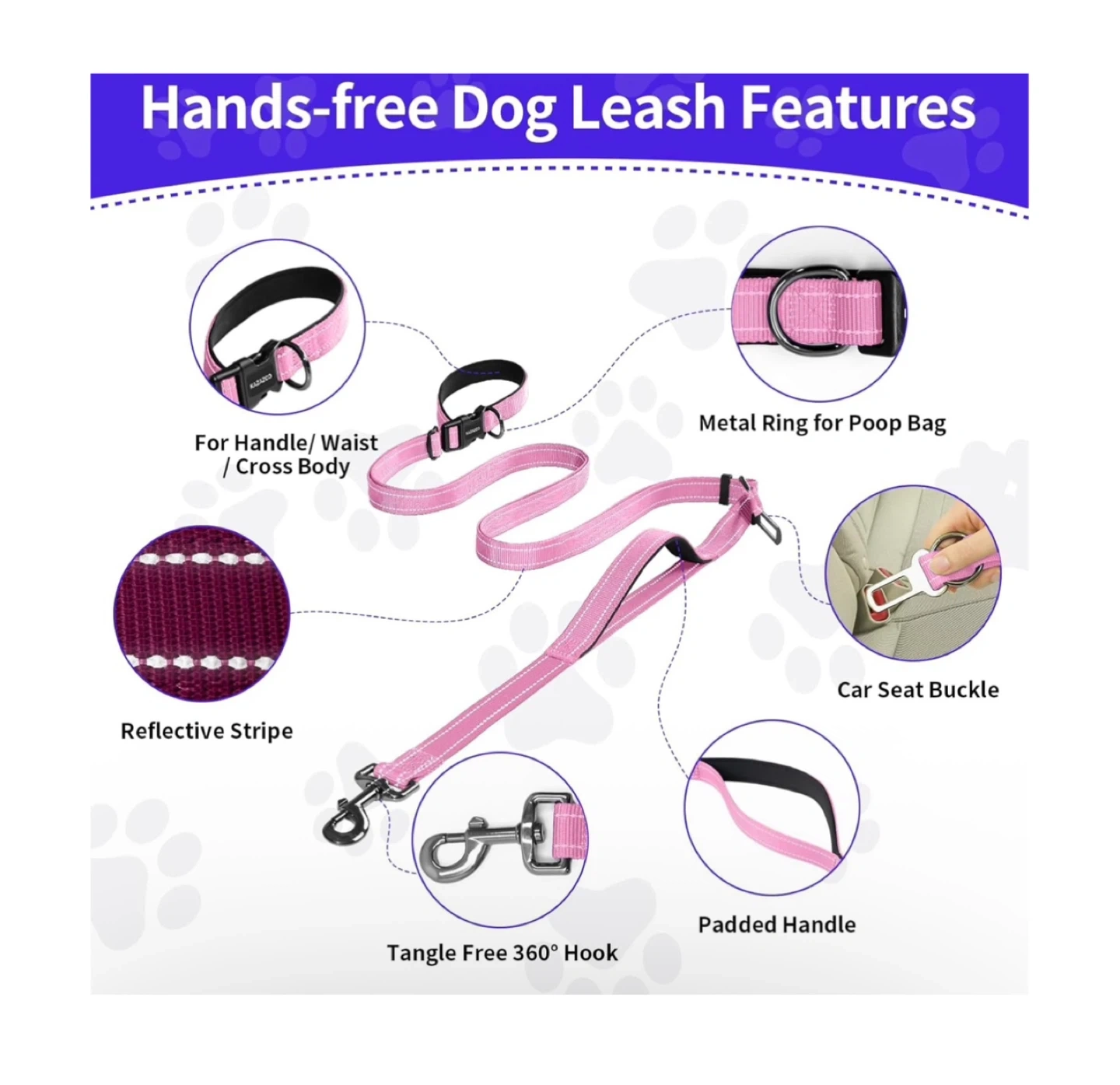 Brand new Size L Hands-Free Dog Leash with Adjustable Length 6-9FT + Dual Padded Handles Reflective Safety for Walking, Jogging & Training | Suitable for Medium to Large Dogs & Puppies Pink
