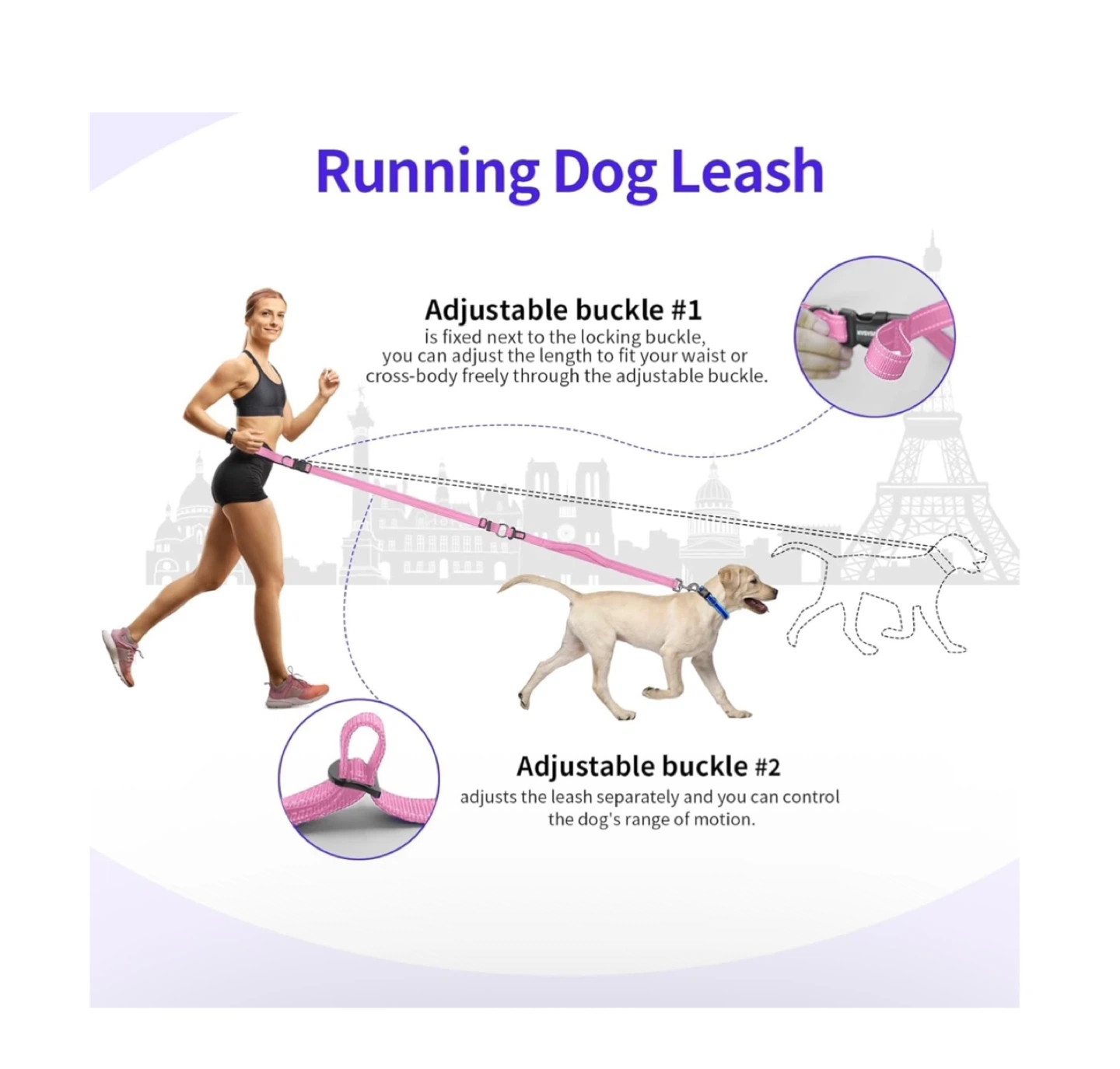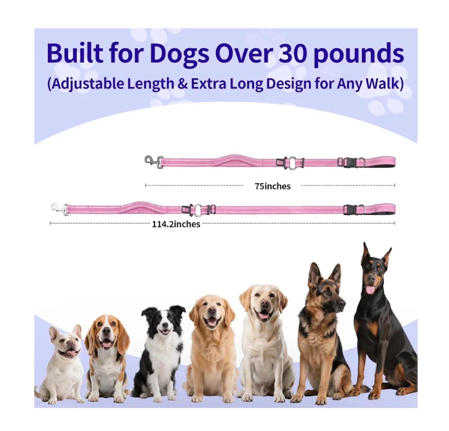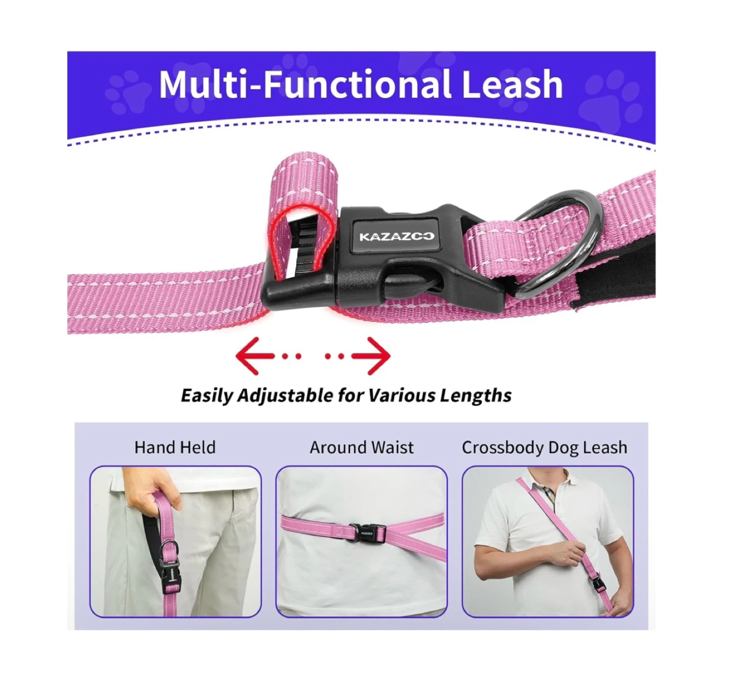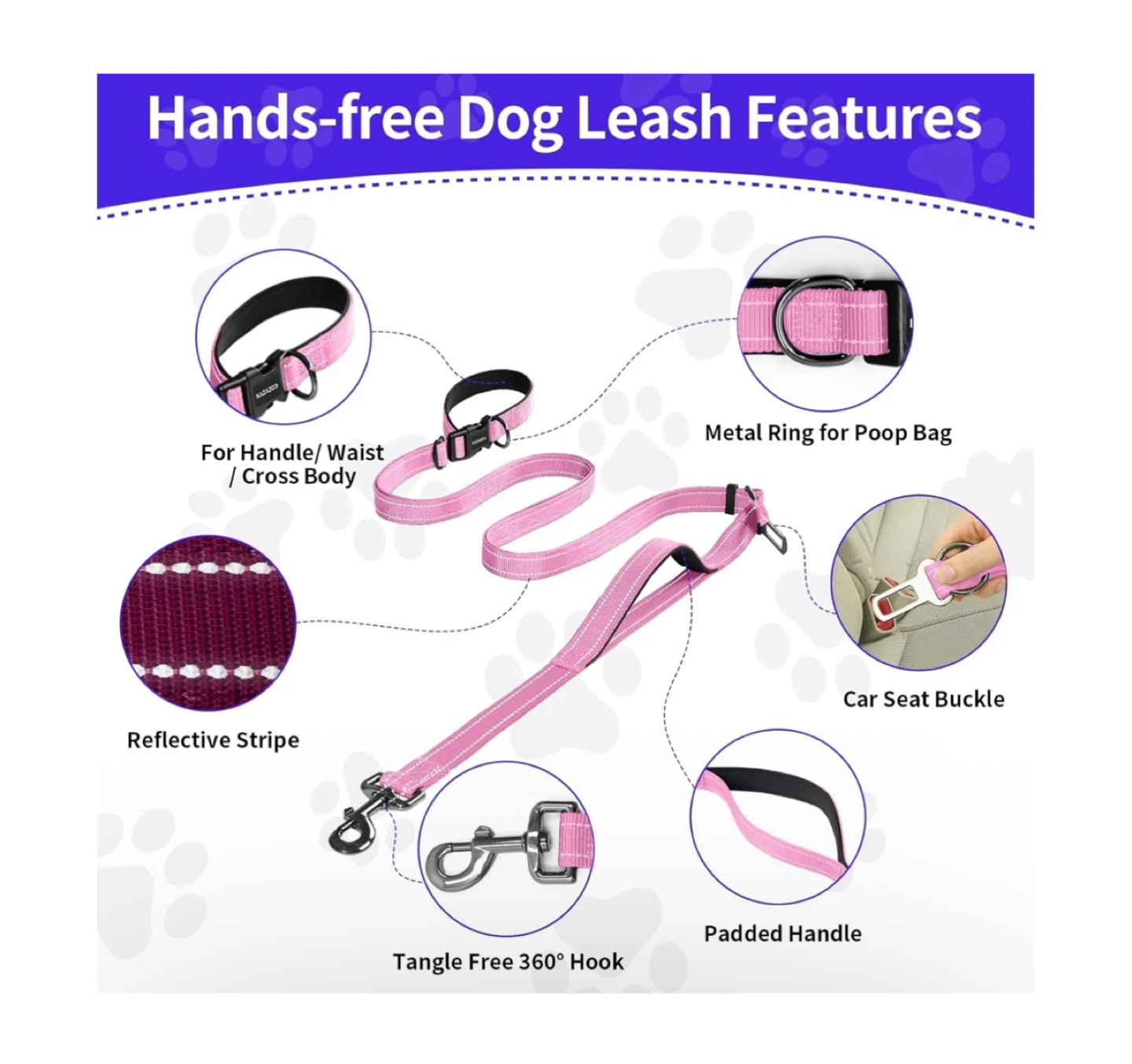 Brand new Size L Hands-Free Dog Leash with Adjustable Length 6-9FT + Dual Padded Handles Reflective Safety for Walking, Jogging & Training | Suitable for Medium to Large Dogs & Puppies Pink