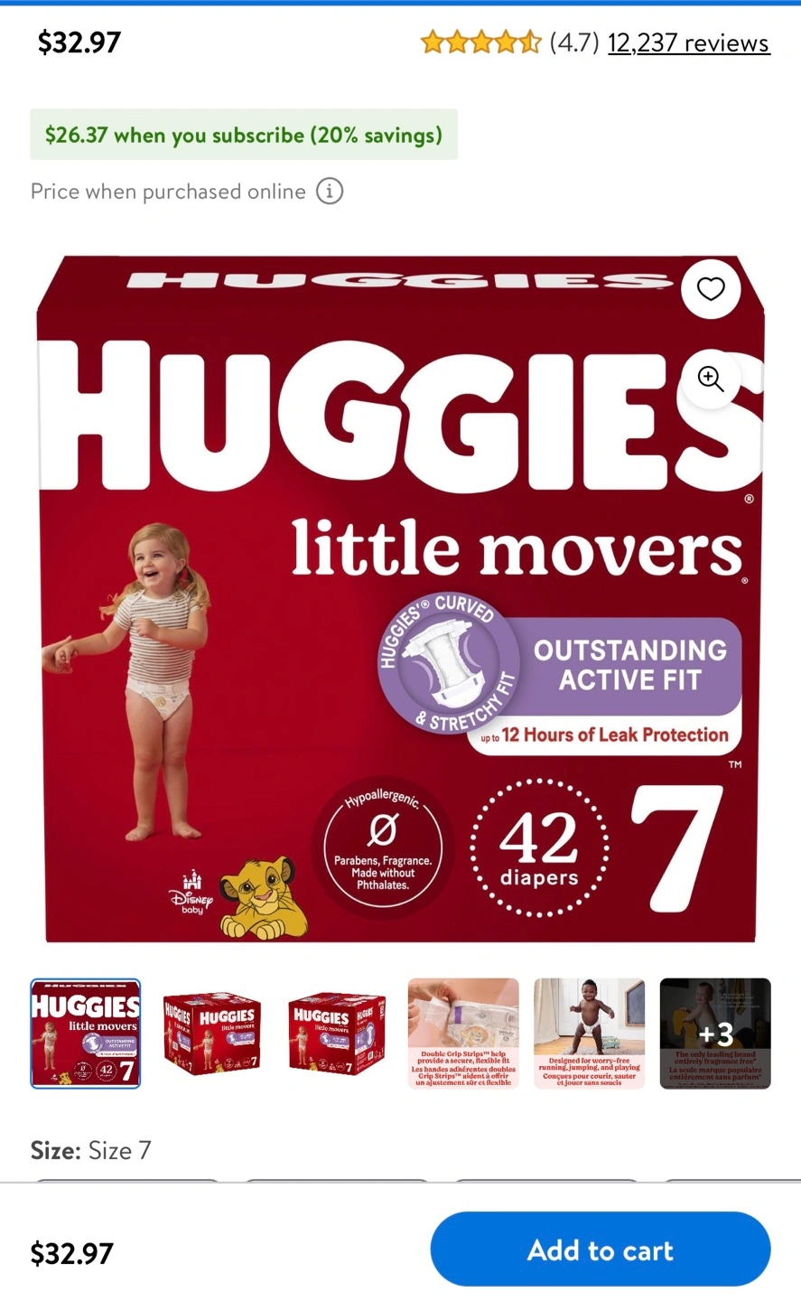 Pampers baby dry ultra (daytime) Size 7 = 43 count