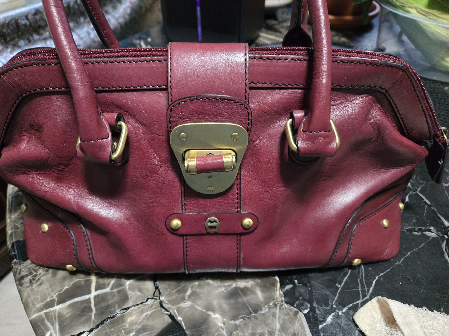 Selling a beautiful Aigner leather handbag. It's in good condition and ready for a new home! The color is a lovely burgundy. Perfect for everyday use or special occasions