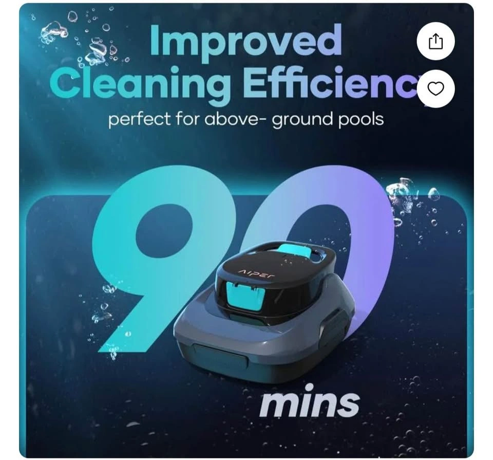The design allows the pool vacuum to use less power in propulsion and dedicate that power to its cleaning capabilities. A seamless, comprehensive, automated cleaning experience with no confusion. That’s what you get when you buy Scuba SE • SMALL BUT MIGHTY: The compact but powerful device easily cleans pools up to 860 sq.ft pool and provides 90 minutes of superb cleaning. Ideal for above-ground and flat floored inground pools • CORDLESS & EASY TO USE: One-Click activation keeps your hands completely free. Unlike other pool cleaner, the Scuba SE is completely cordless, meaning no wrapped or tangles wires. Its also lighter and easier to store than corded cleaners • AUTO-PARKING: When the battery is low, the Scuba SE will automatically park near the edge of your pool for easy retrieval without needing to get wet. Stay informed effortlessly with our intuitive audio alert system • QUICK DRAINAGE: For enhanced portability, the Scuba SE now features an advanced water purging system that can drain up to 80% of stored water in just 15 seconds