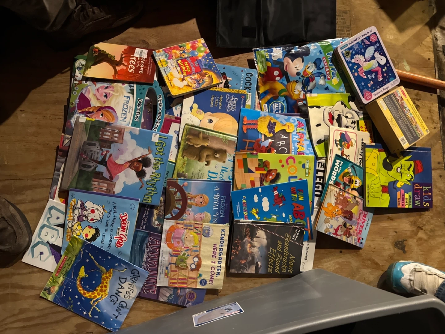 Bundle of various children's books (36 books)including activity books and storybooks. Titles include 'The Lego Ideas Book', 'Frozen: Write and Erase', and 'Aphrodite'. Great for young readers and creative minds!