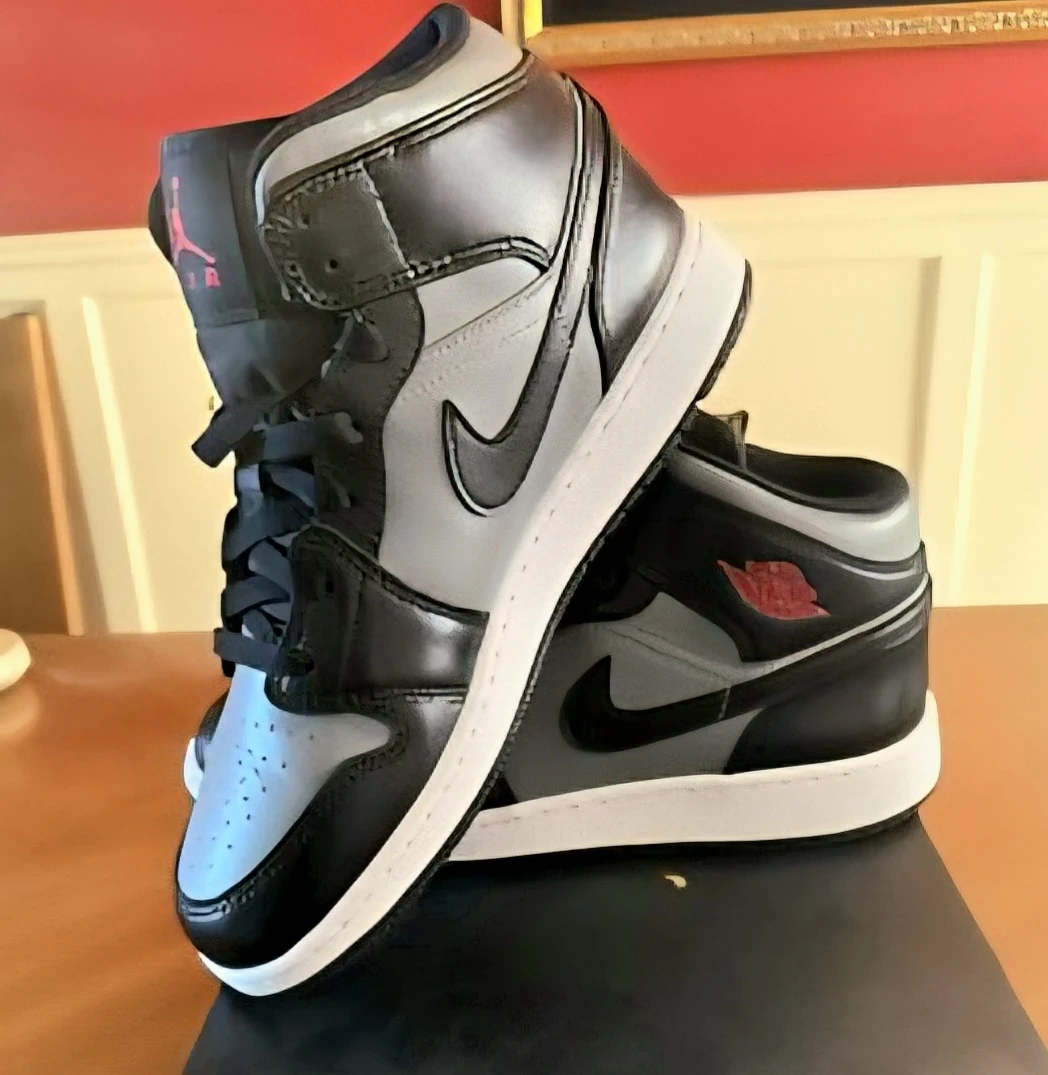 43Selling a pair of Air Jordan 1 Mid Shadow, black and grey. In excellent shape