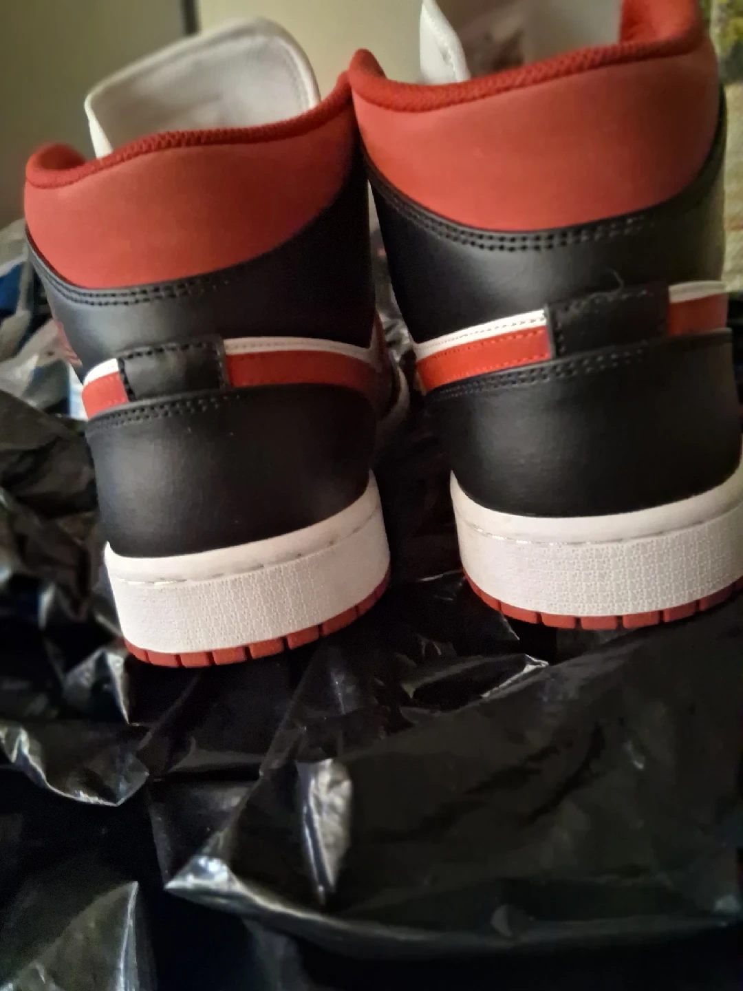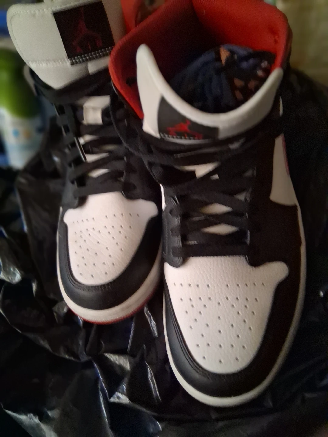 15Selling a pair of Air Jordan 1 Mid sneakers in a classic white, black, and red colorway. They're in great condition and ready for a new home!