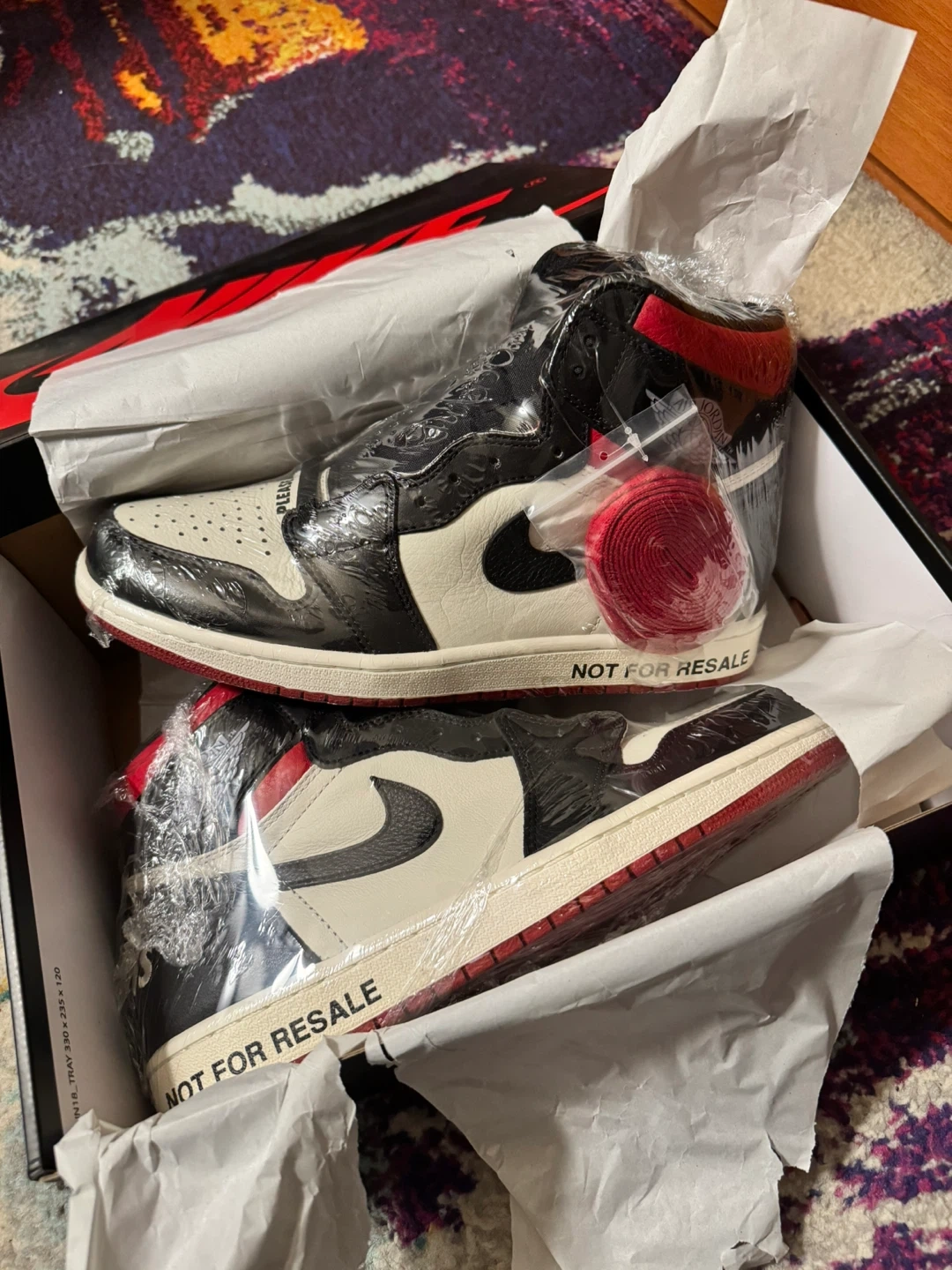 10100% authentic. Never worn, still deadstock with original box and tags. Highly sought-after Jordan 1 “Not For Resale” in Sail/Black/Varsity Red. Local pickup only (NYC). Cash only.