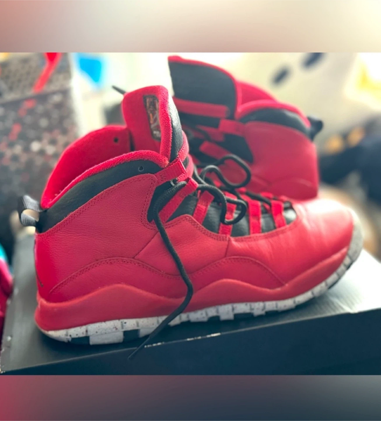 Selling a pair of Air Jordan 10 Retro Bulls over Broadway! These are a size US 6Y, UK 5.5, and EUR 38.5. The shoes come with the original box. Some slight creasing but otherwise in great condition.