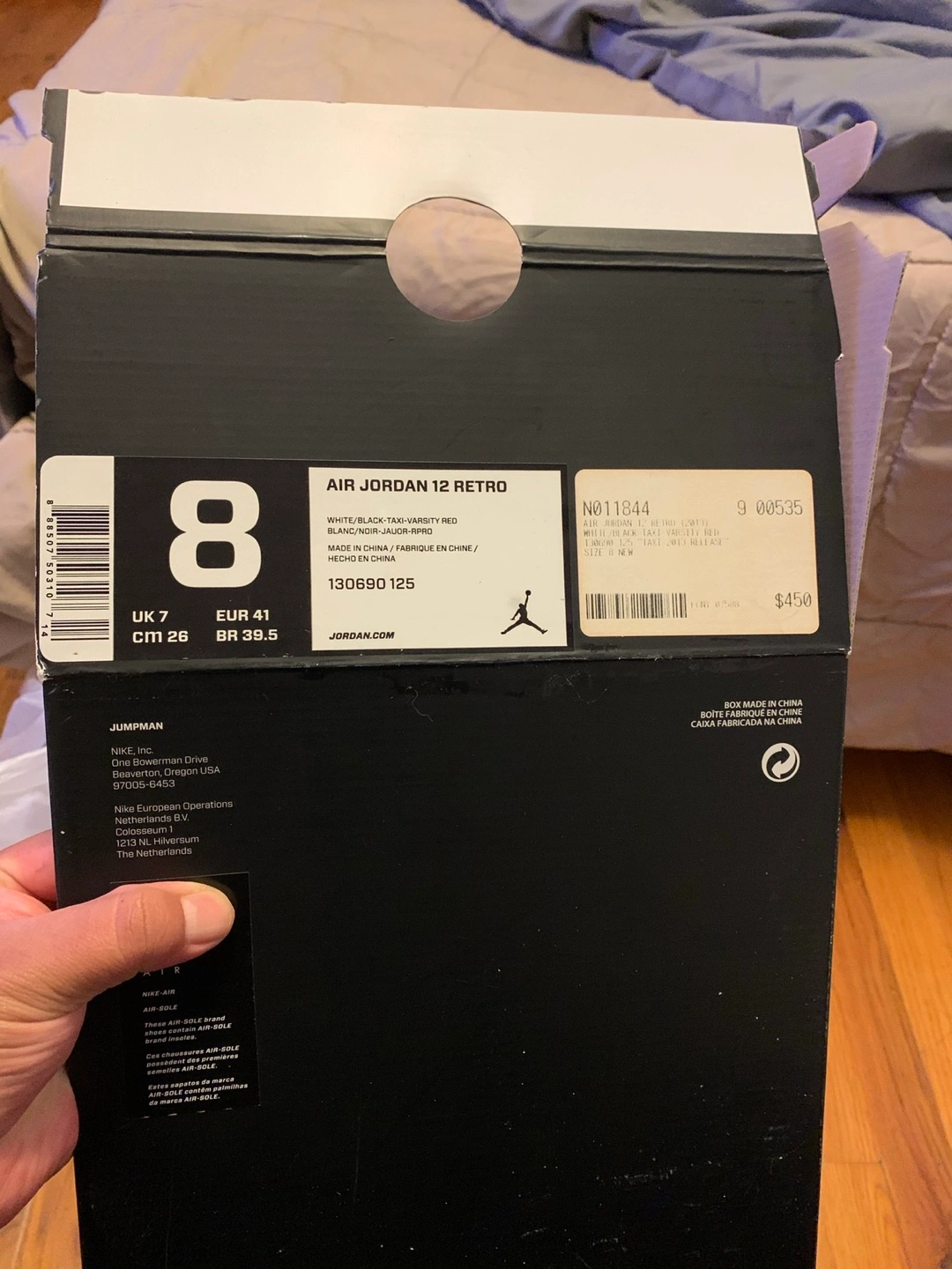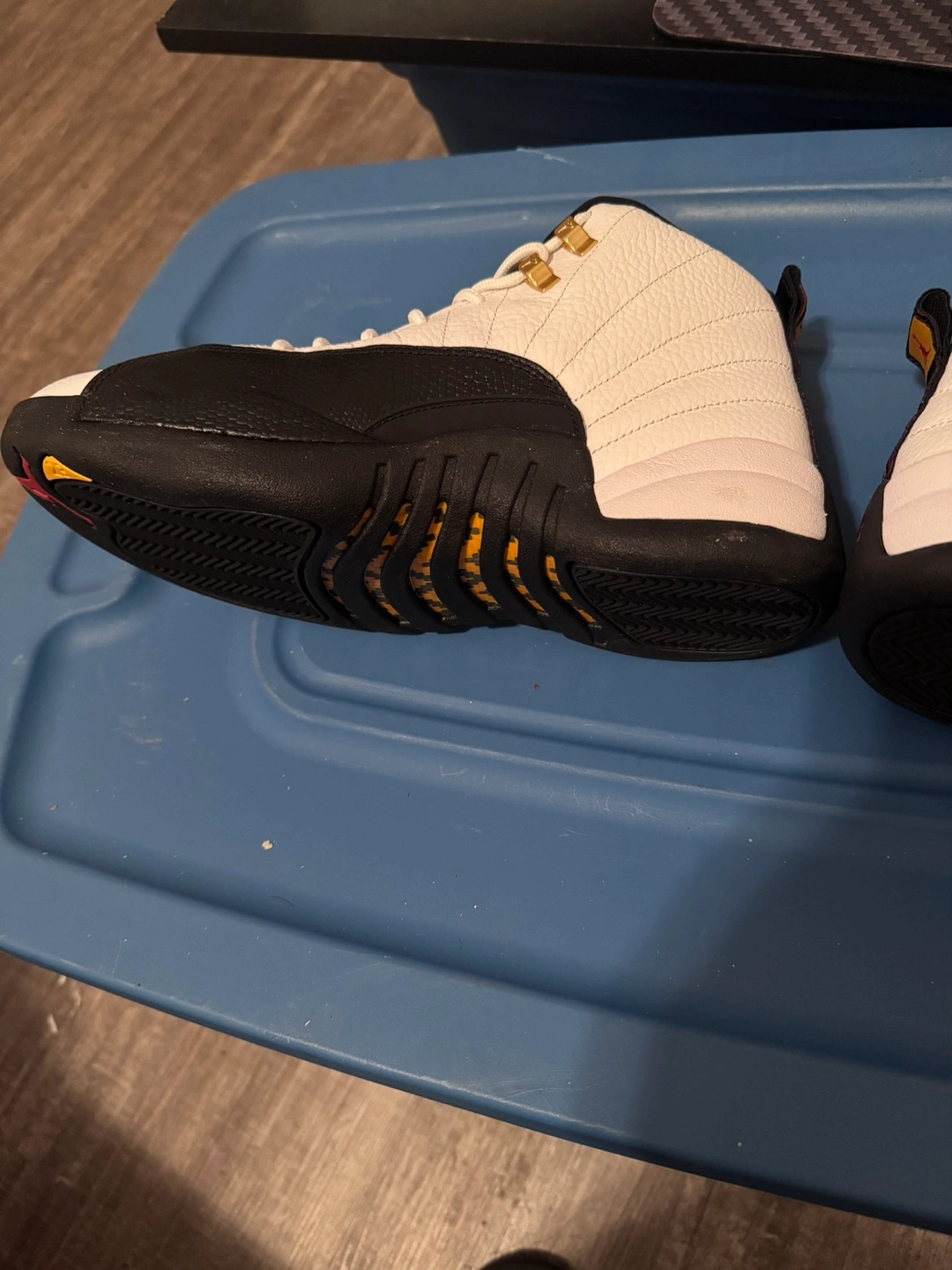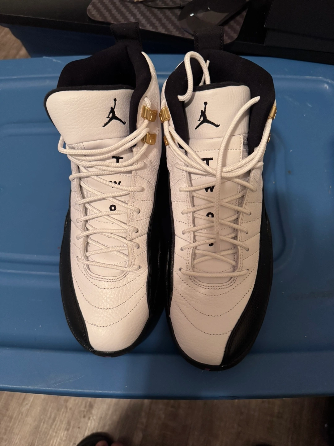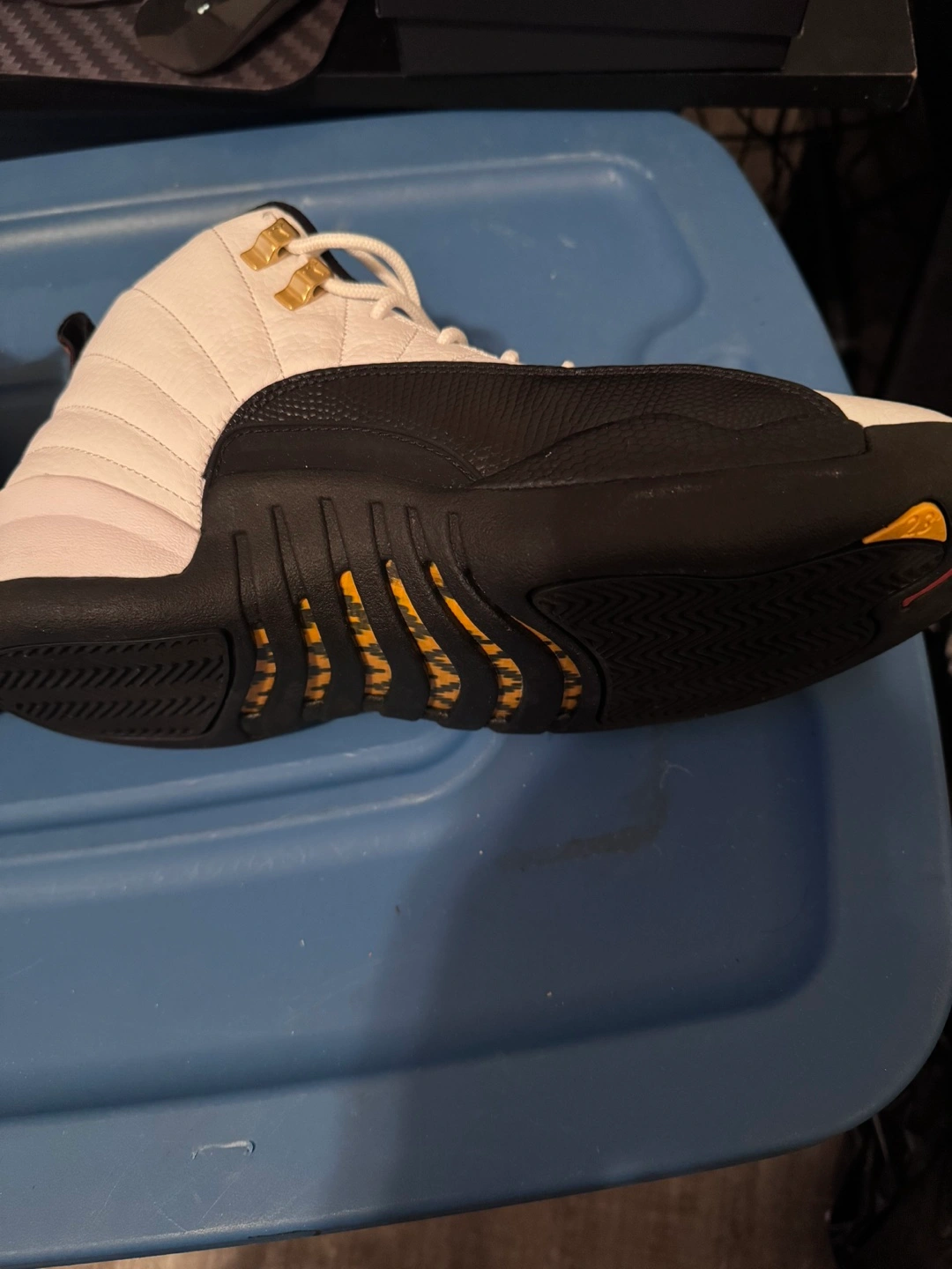 144Men's Air Jordan 12 Retro sneakers. White, black, and gold colorway. Size US 8. Made in China. Pre-owned.
