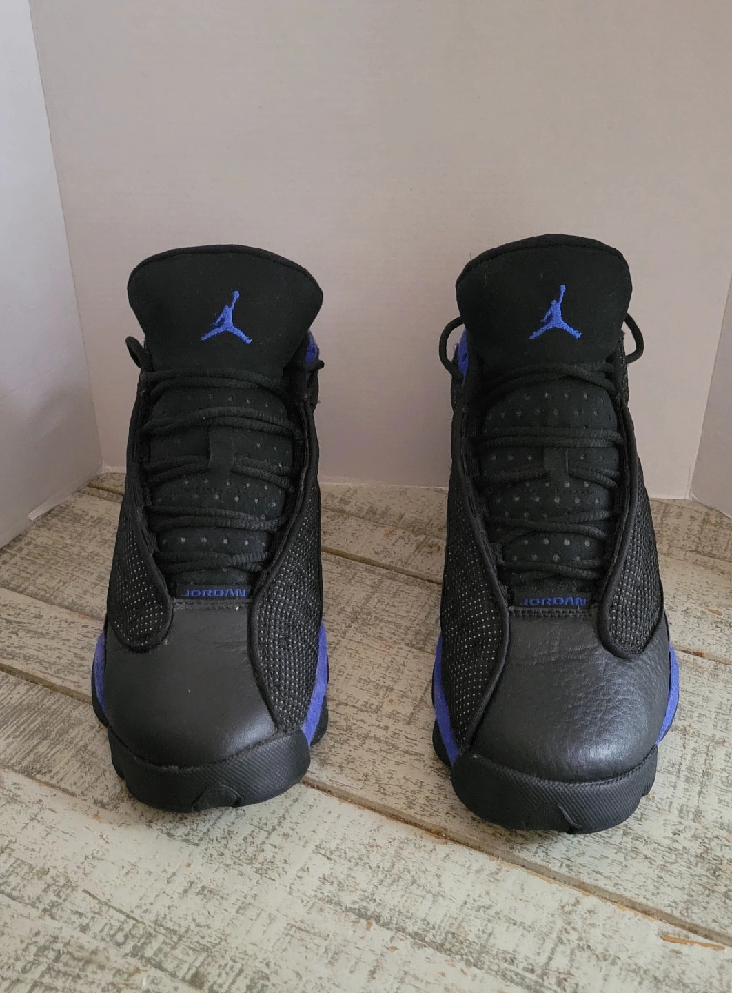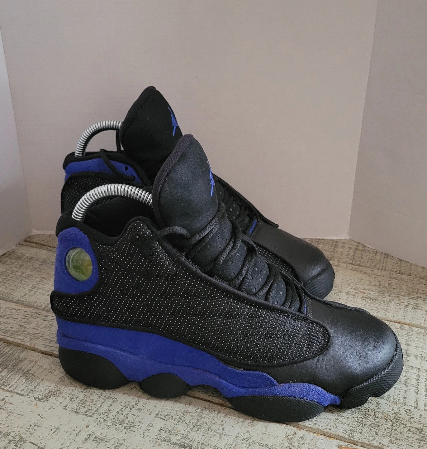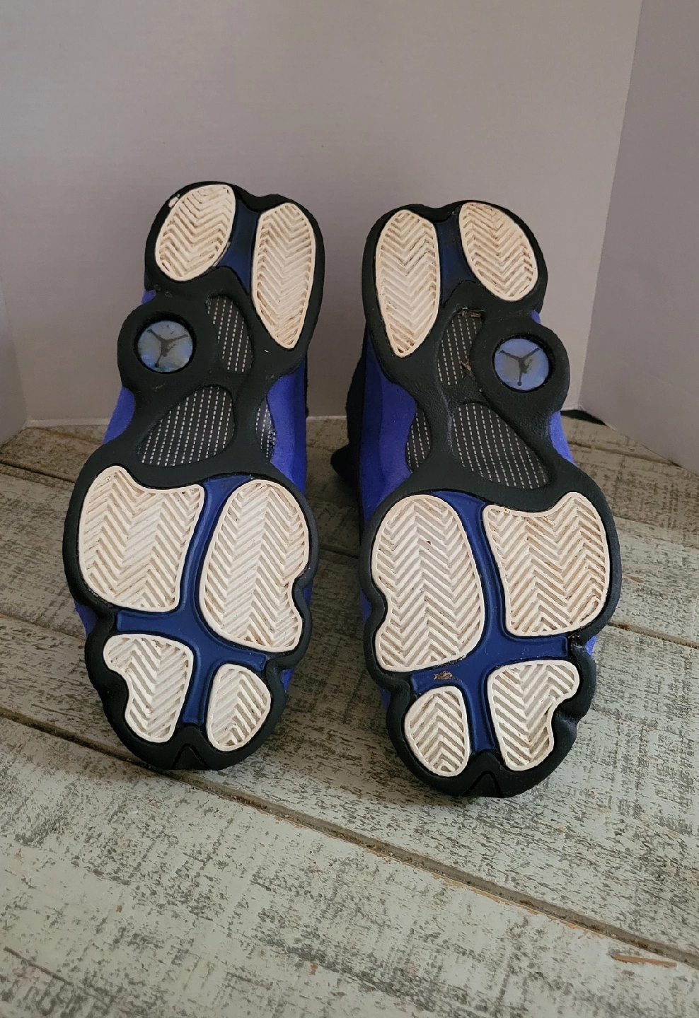Selling a pair of Air Jordan 13 Retro in Hyper Royal and Black. The size is 4.5Y. They are in good condition and ready for a new home!