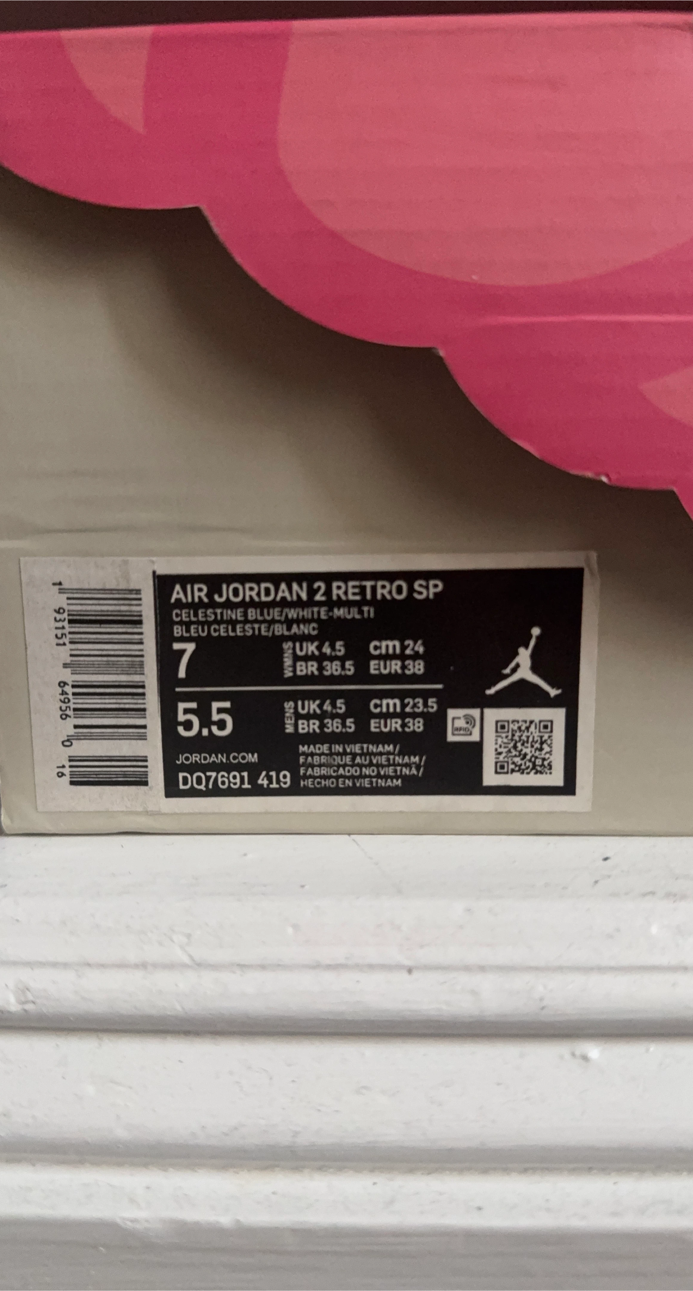Selling a pair of Air Jordan 2 Retro SP in Celestine Blue/White-Multi. The size is US Men's 5.5 / US Women's 7. Made in Vietnam Jordan Retro 2 J. Balvin