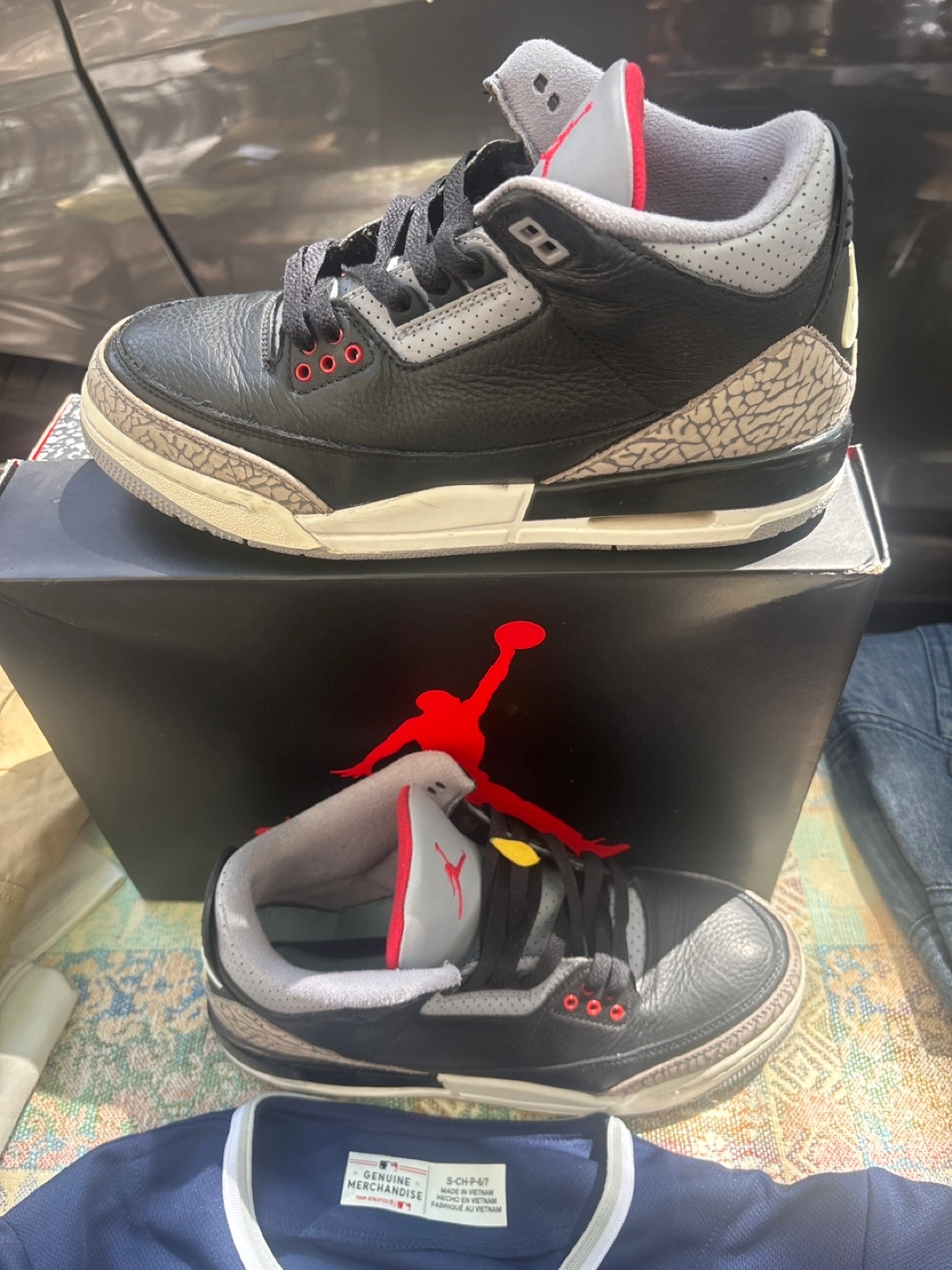 106Selling a pair of Air Jordan 3 Retro in the classic Black Cement colorway! They come with the original box. These shoes are in good condition, perfect for any sneakerhead or Jordan fan