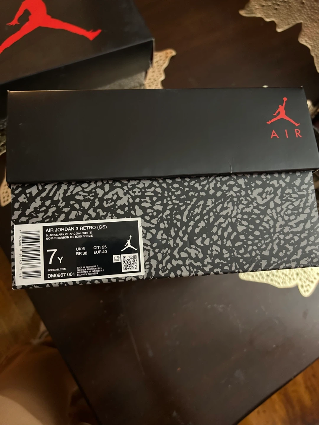 10Selling a pair of Air Jordan 3 Retro (GS) in black. The size is 7Y. Comes with the original box!