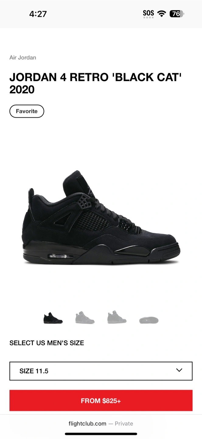 177Selling a never worn pair of Air Jordan 4 Retro 'Black Cat' sneakers from the 2020 release in US men's size 11.5! They are in great condition and ready for a new home. Don't miss out on this classic colorway!
