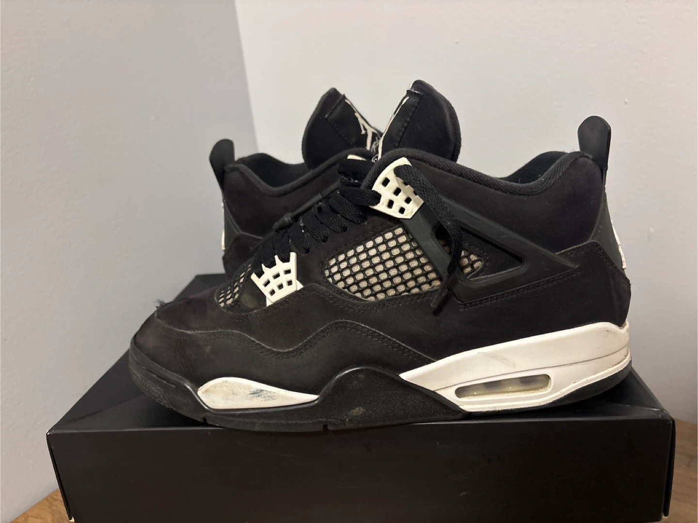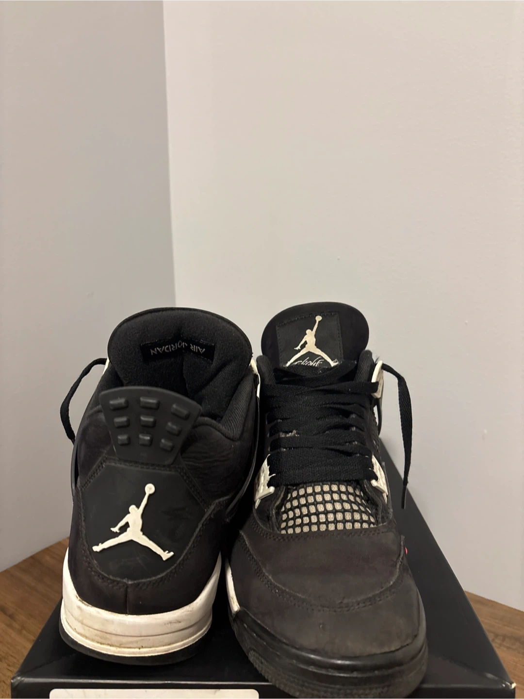 65Selling a pair of Air Jordan 4 Retro in the classic Black Cat colorway. These shoes come with the original box. They show some signs of wear, but still have plenty of life left!