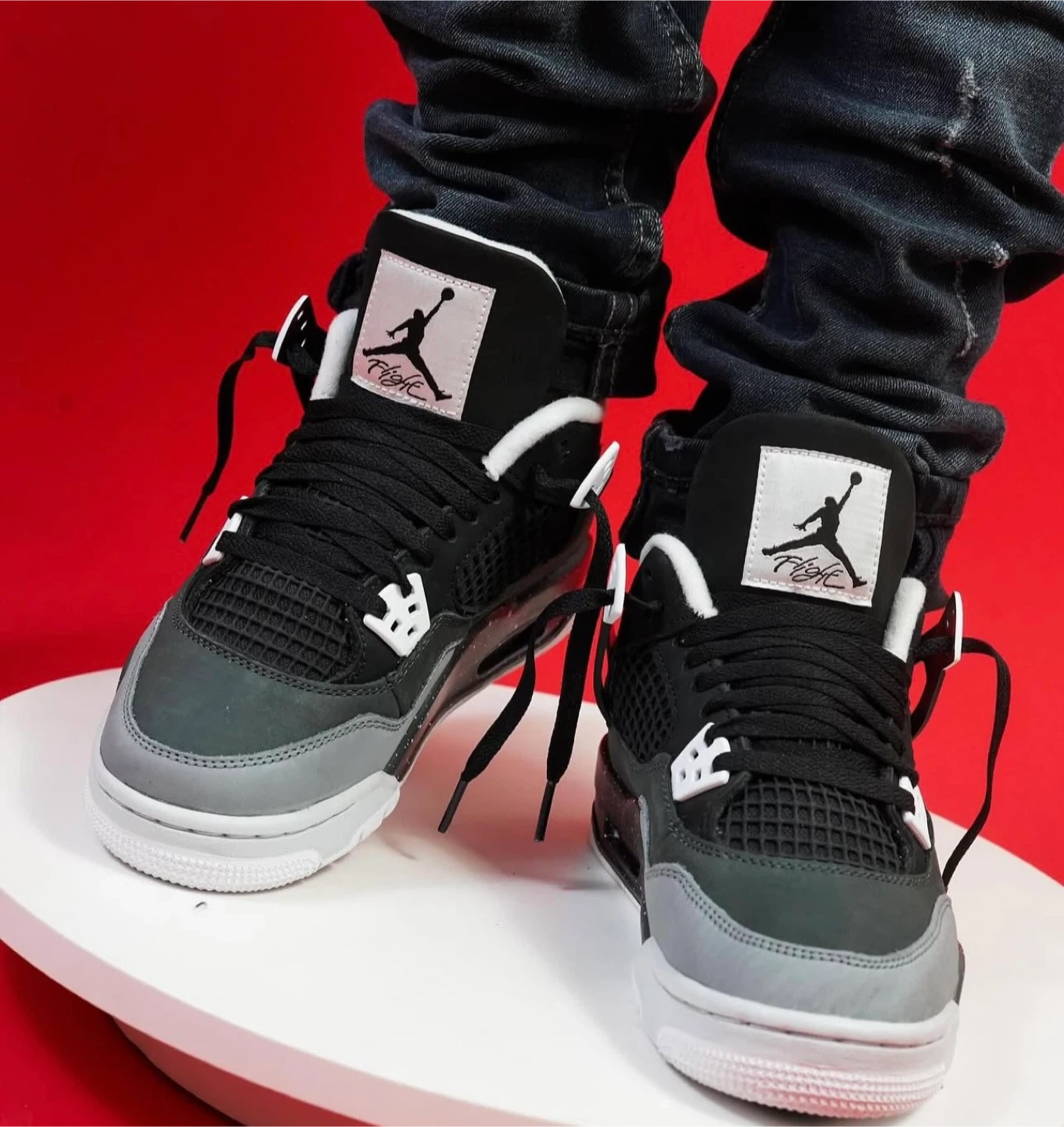 15Selling a pair of Air Jordan 4 Retro sneakers in black and light steel grey. These stylish shoes feature the iconic Jumpman logo. Great for casual wear or hitting the court!