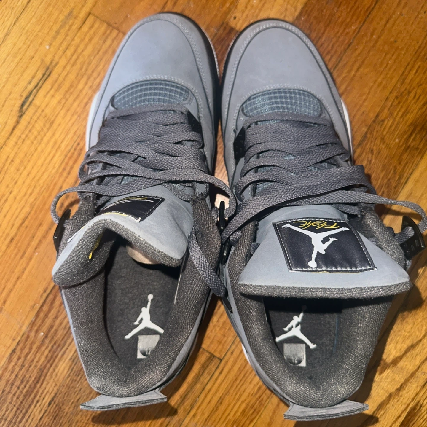 Selling a pair of Air Jordan 4 Retro in the Cool Grey colorway. They're in good condition and ready for a new home! The classic design and comfortable fit make them a great addition to any sneaker collection with box and receipt