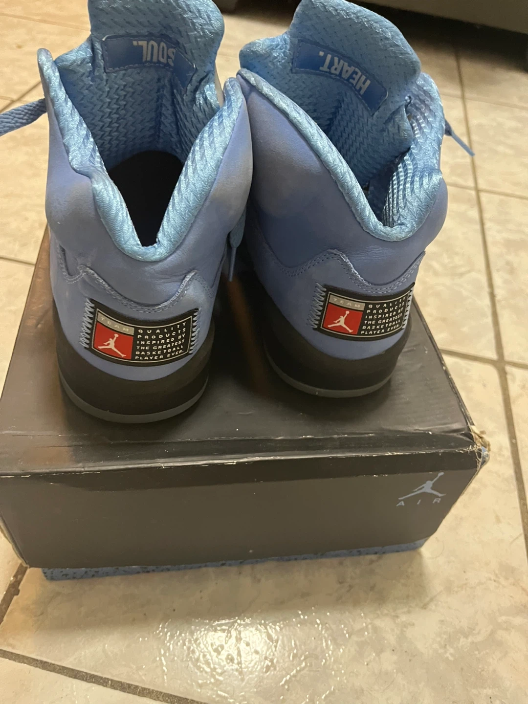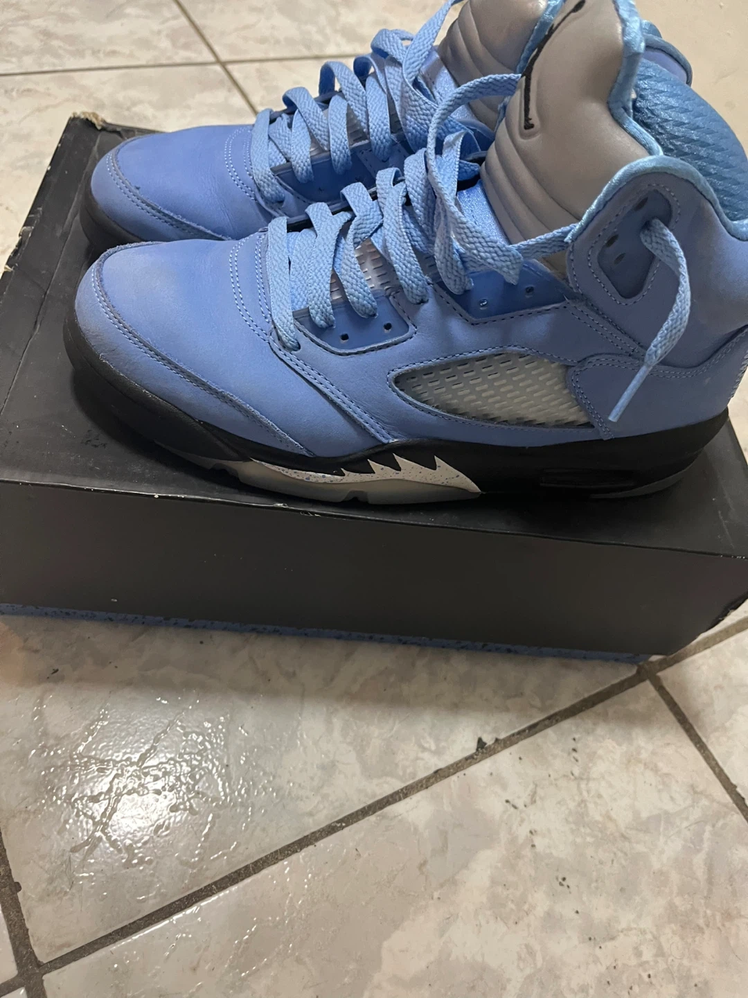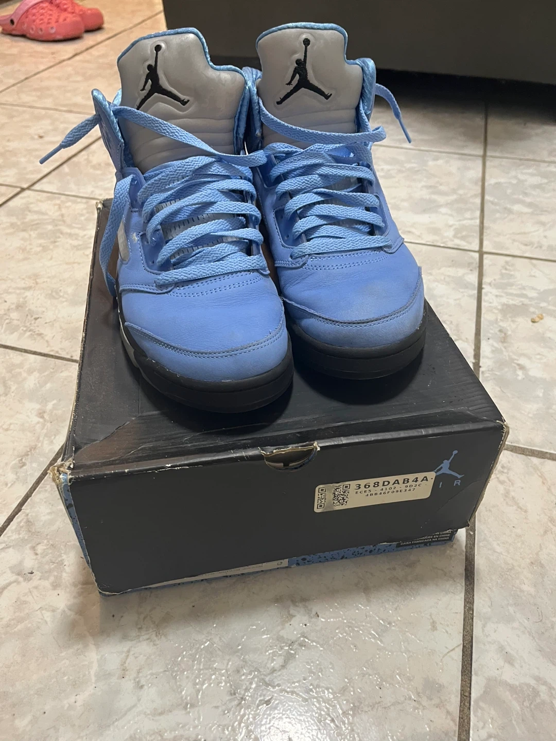 Selling a pair of Air Jordan 5 Retro in the University Blue colorway. These come with the box. They are in great condition and ready for a new home!