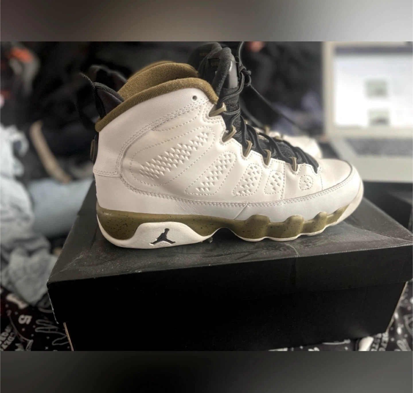 Air Jordan 9 Retro BG White/Black-Militia Green Size 6Y