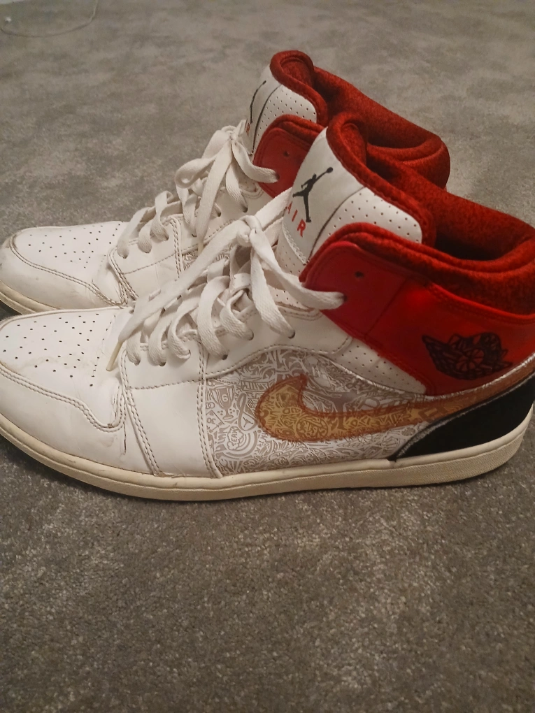 Selling a pair of Air Jordan high-top sneakers. They show some signs of wear, as seen in the photos, but still have lots of time left. SIZE 13.