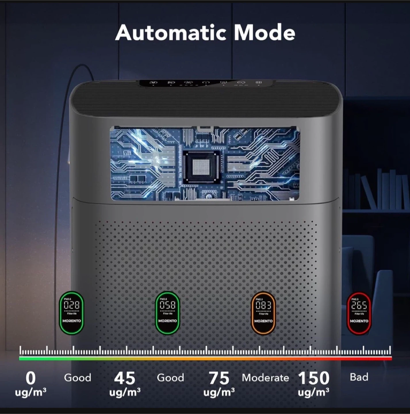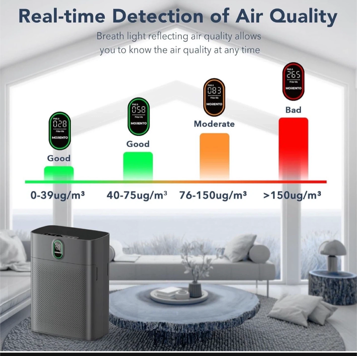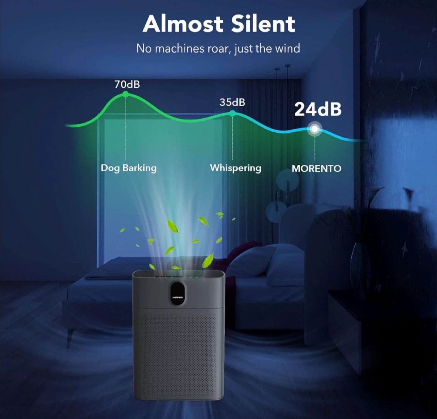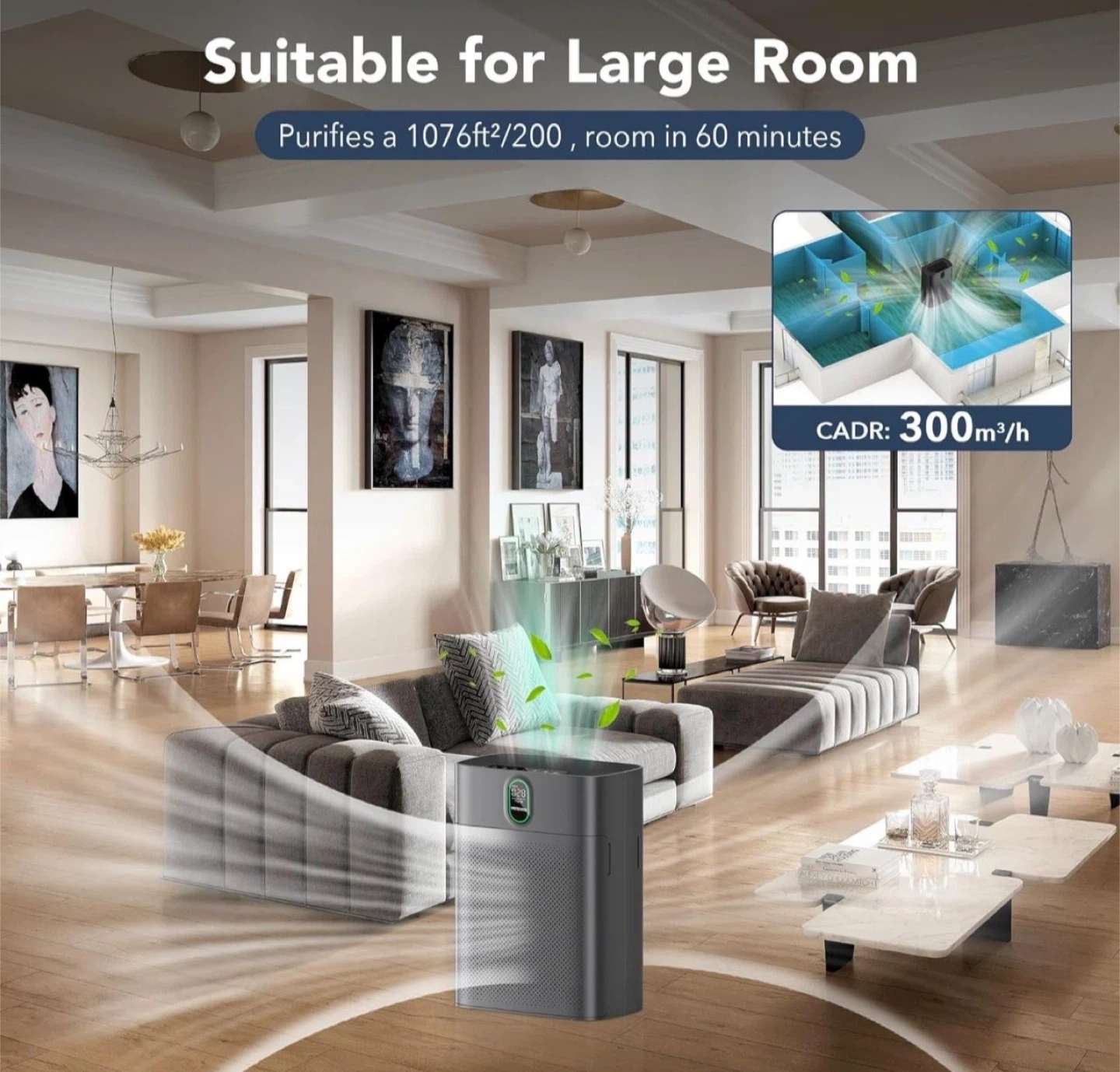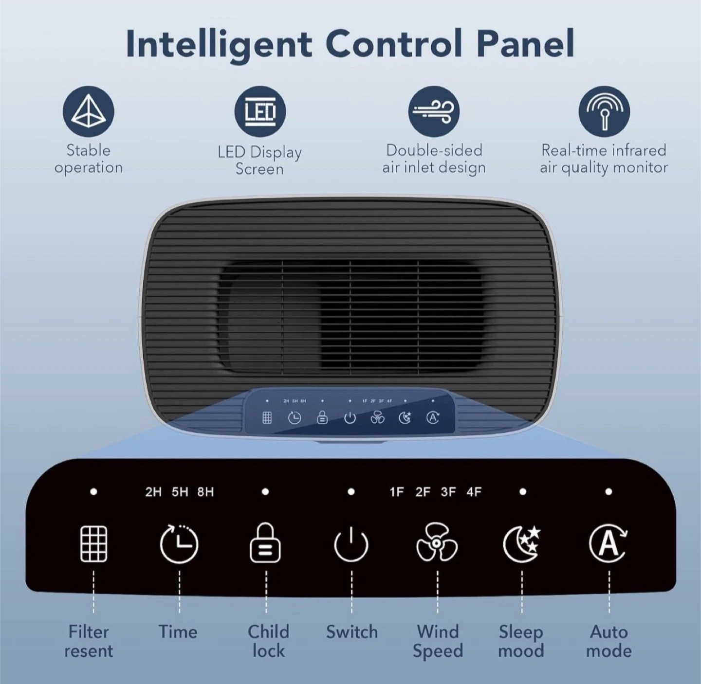 172Air Purifiers for Home Large Room up to 1076 Sq Ft with PM 2.5 Display Air Quality Sensor, H13 True HEPA Filter Remove 99.97% of Pet Hair with Double-sided Air Inlet, 24db, Grey, 1 Pack
