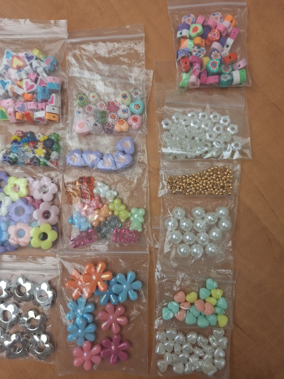Assorted craft beads. 18 variety of beads (bears, heart, flowers, pearls,stars, beads etc) and a bag alphabets. Cash only, pick up at Donmills & Finch.