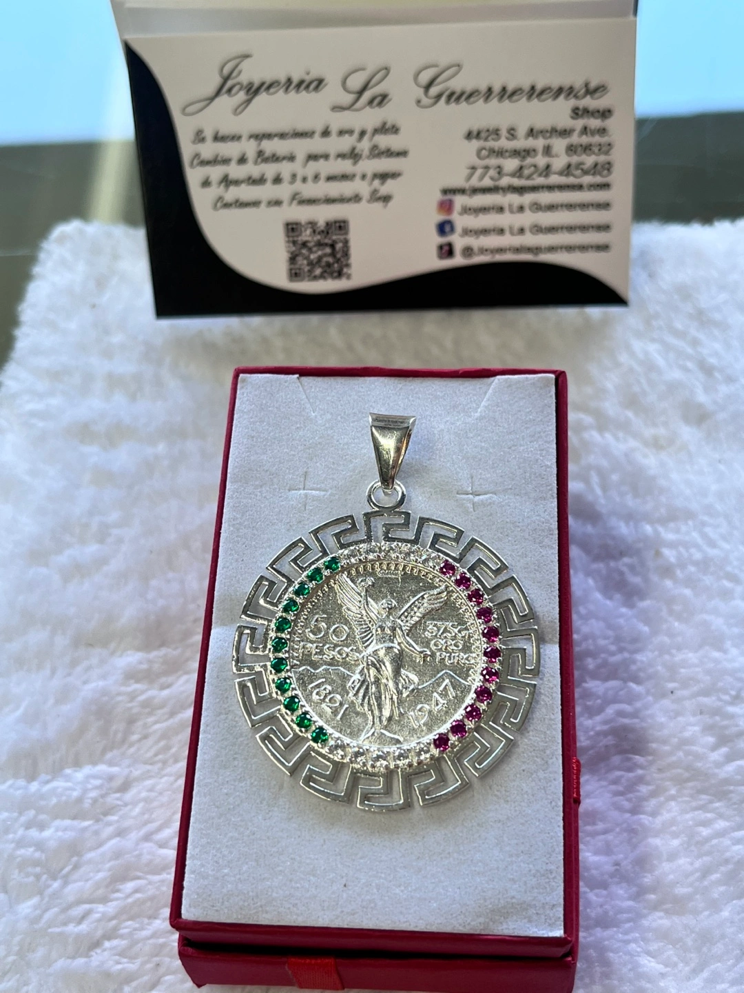 Selling a beautiful silver pendant from Joyería La Guerrerense! It features a unique design with colorful stones and intricate detailing. Comes in its original box! Medalla plata 9.25 traída de Taxco con piedras centenario para hombre o mujer