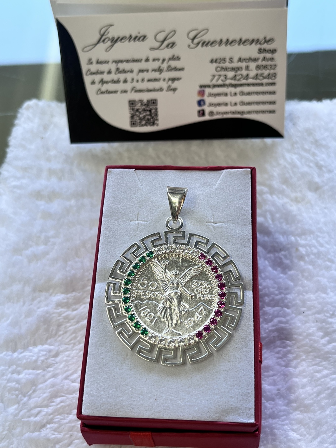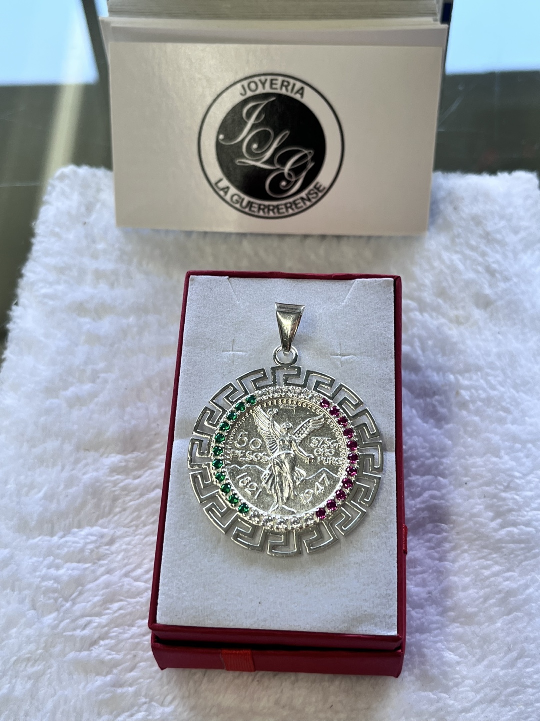 Selling a beautiful silver pendant from Joyería La Guerrerense! It features a unique design with colorful stones and intricate detailing. Comes in its original box! Medalla plata 9.25 traída de Taxco con piedras centenario para hombre o mujer