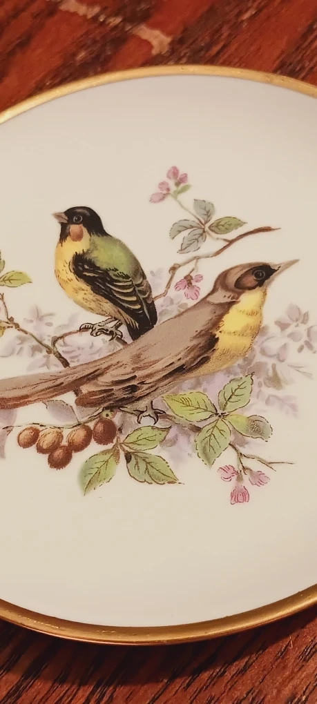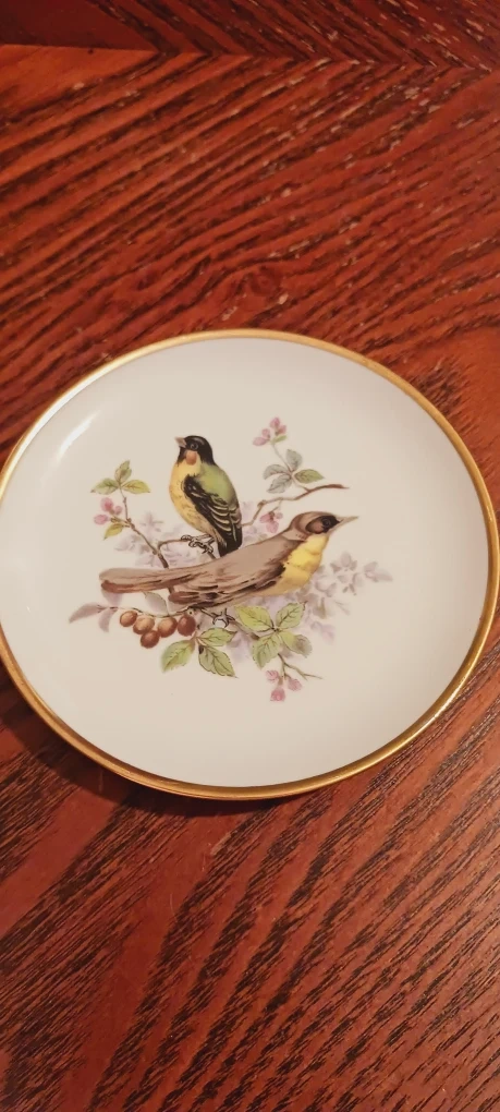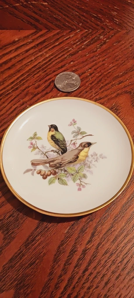 1000+Selling a charming AK Vogel Western Germany 🇩🇪 22K Gold Trim Handpainted Fine German Porcelain Miniature Saucer Plate. It features a beautiful bird design with a gold rim. The plate is marked "Made in Western Germany". It would make a lovely addition to any collection !! 4" diameter. Excellent condition. ALL MY PRICES ARE NEGOTIABLE !!
