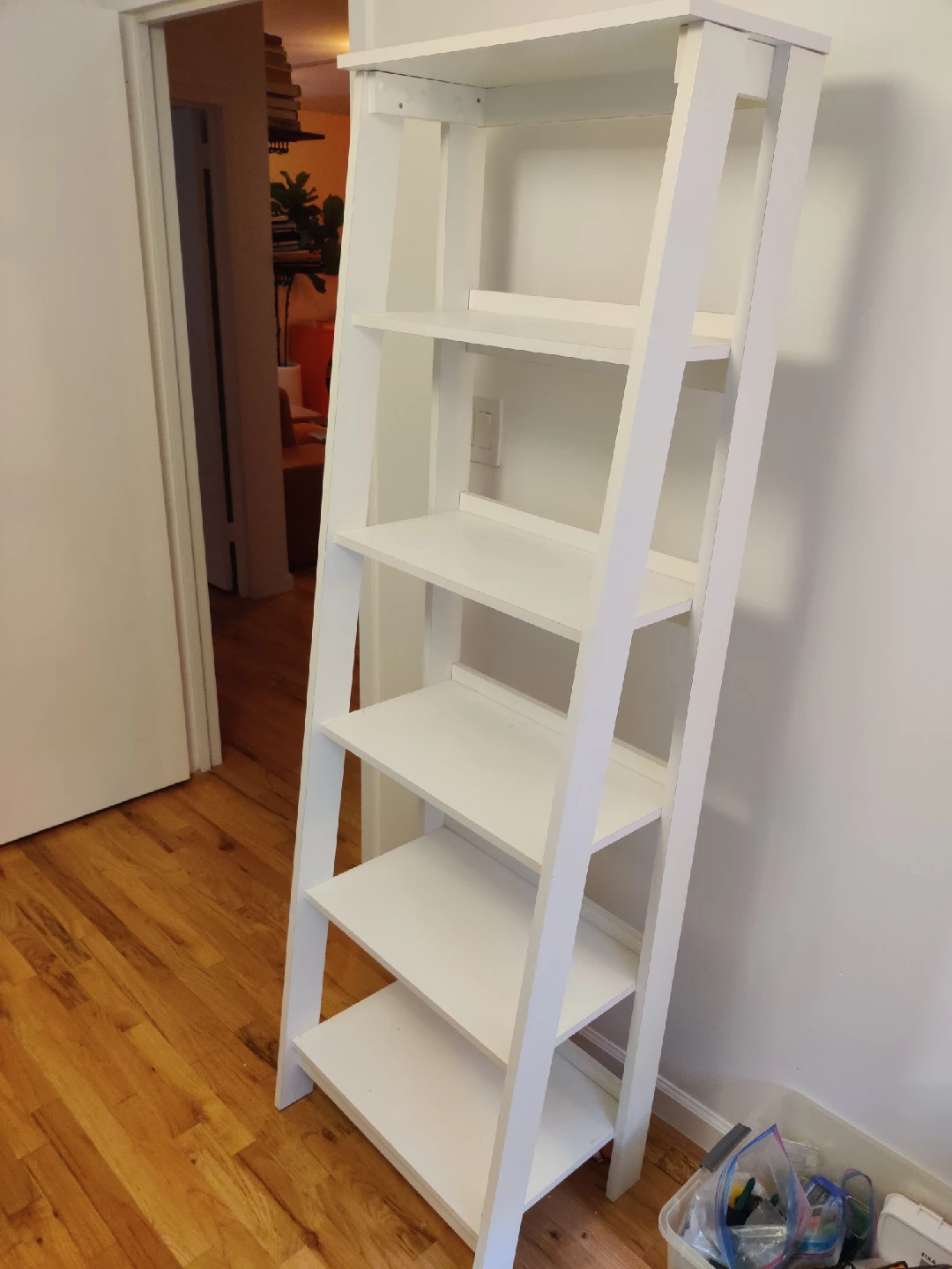 1 / 21 / 2Buy & SellWhite Wooden Ladder ShelfWhite Wooden Ladder Shelf$36Selling a white wooden ladder shelf. It's in good condition and perfect for adding some storage and style to any room! It has five shelves.ConditionLike newWHERE TO MEETCheck LocationView MapSELLERverifiedMarceloHarlem1347 reviews7 chatsΒ·10 favoritesΒ·315 viewsSEND CHAT TO SELLERHi Marcelo! Iβm interested in your listing.Hi Marcelo! Iβm interested in your listing.Get the Karrot app to chatSign In to chat