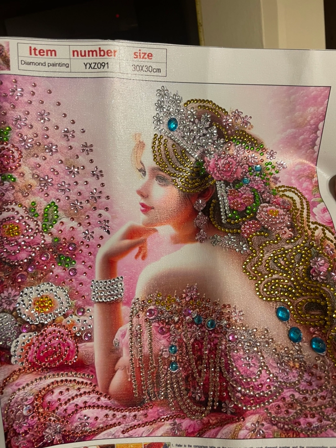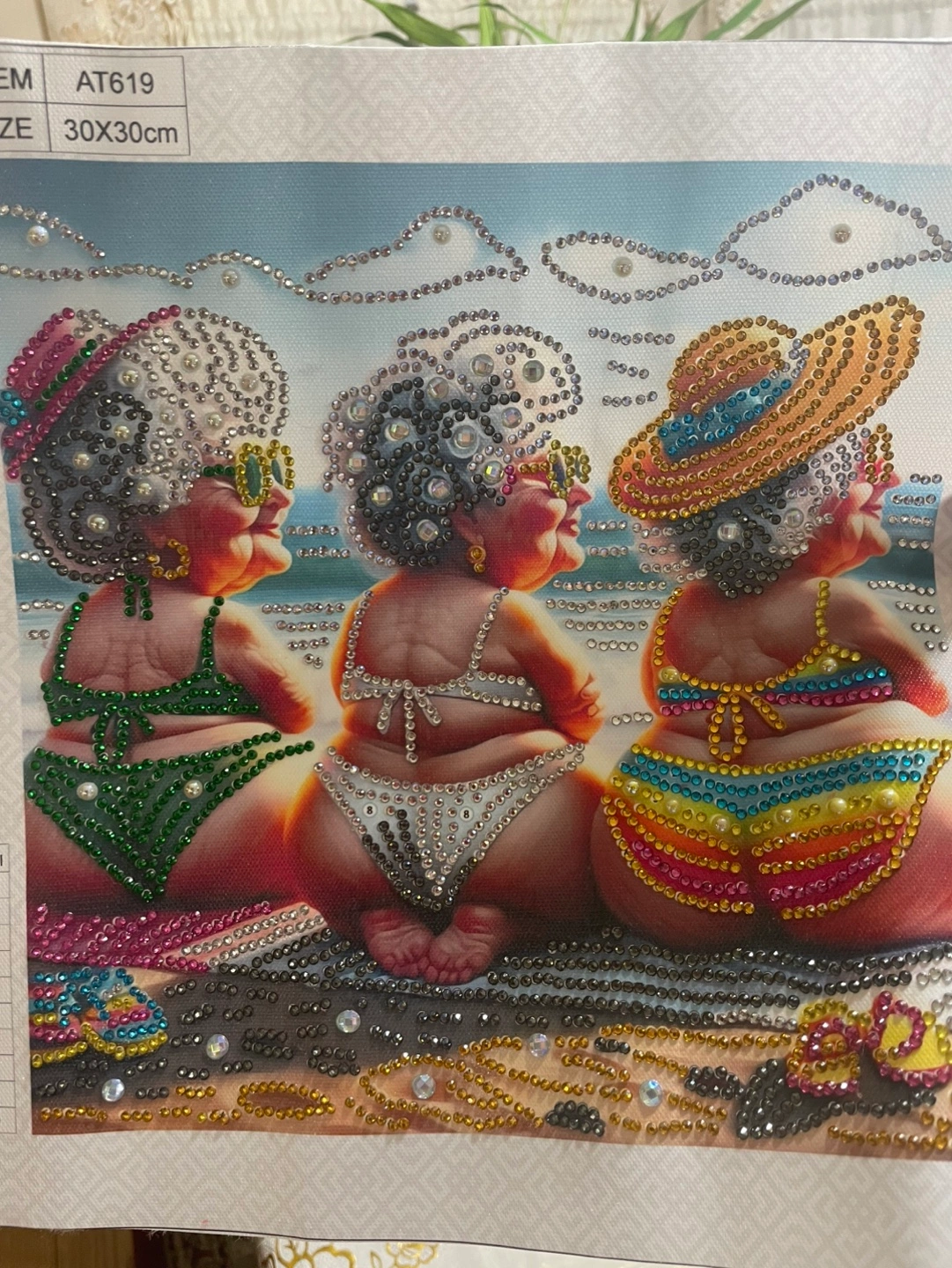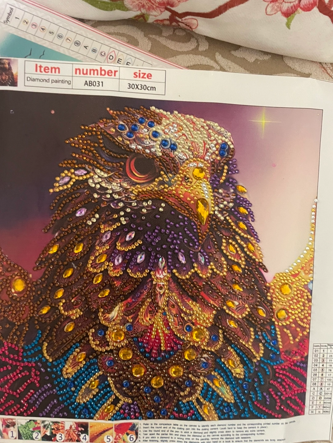 Diamond painting . Done by hand . Beautiful chick. Nicely decorated with elegant and colorful beads . Finished painting