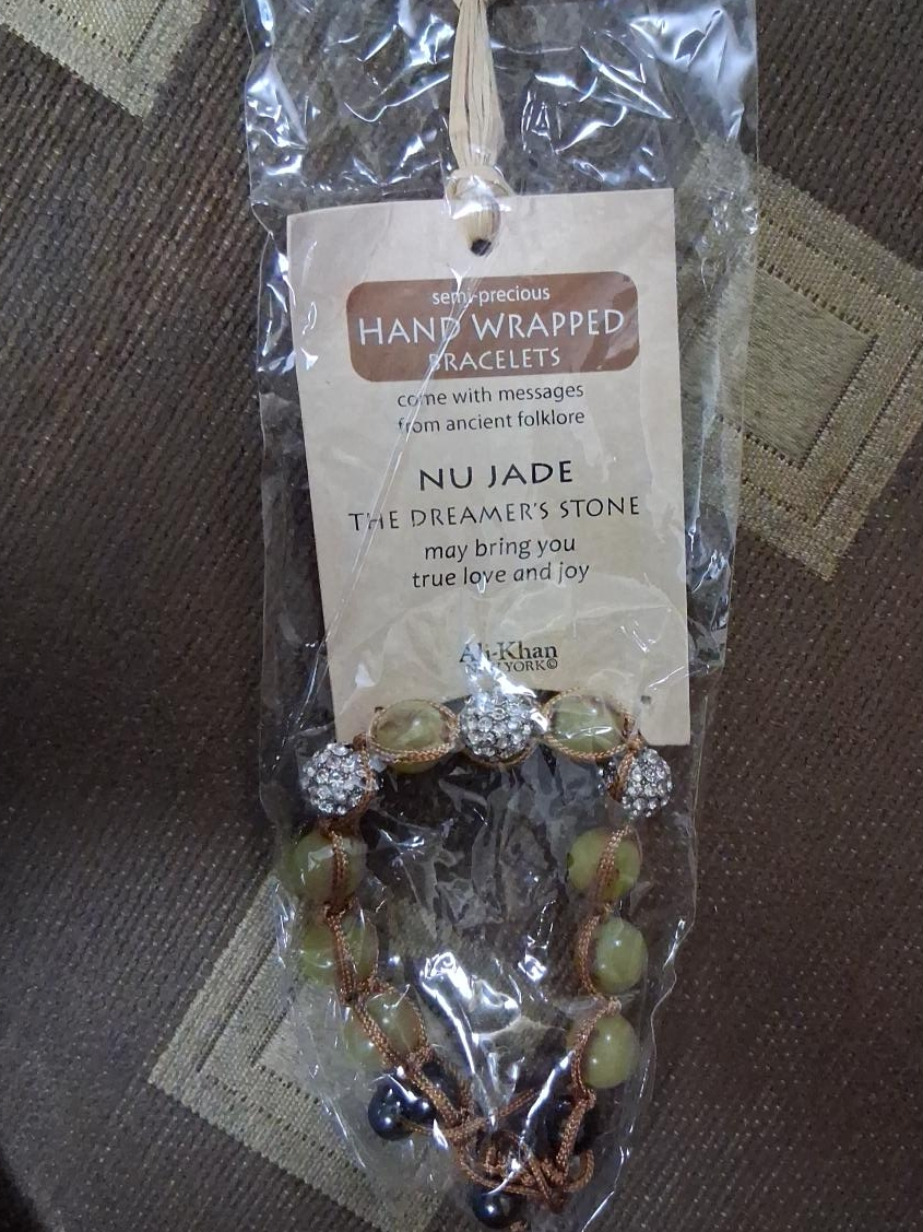 65Selling a brand new Al-Khan New York semi-precious hand wrapped bracelet. It's Nu Jade, the dreamer's stone, and comes with messages from ancient folklore. It may bring you true love and joy!