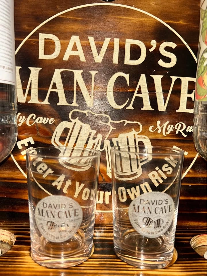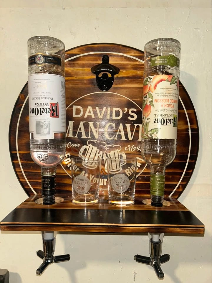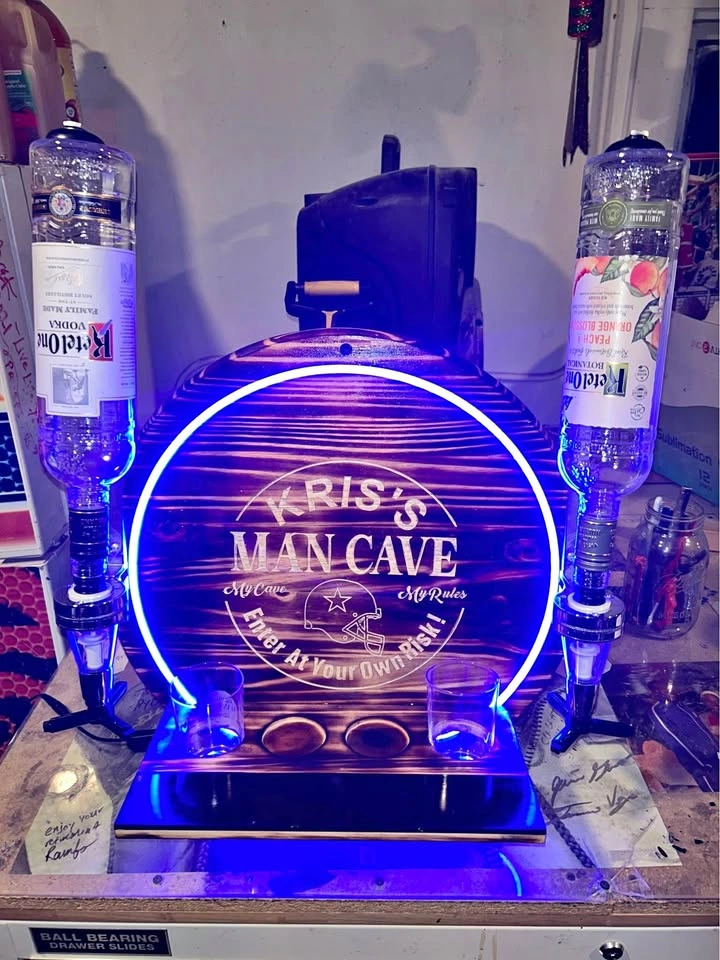 Two alcohol dispenser with glasses to match the board. LED lights extra
