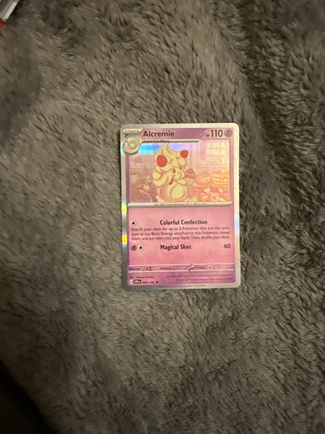 Selling an Alcremie Pokemon card. The card features the 'Colorful Confection' ability and the 'Magical Shot' attack. It's in great condition!