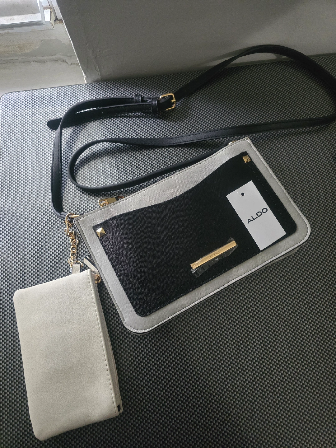 10Selling a stylish ALDO crossbody bag in black and white. It's in great condition and ready for a new owner! Perfect for carrying your essentials while keeping your hands free