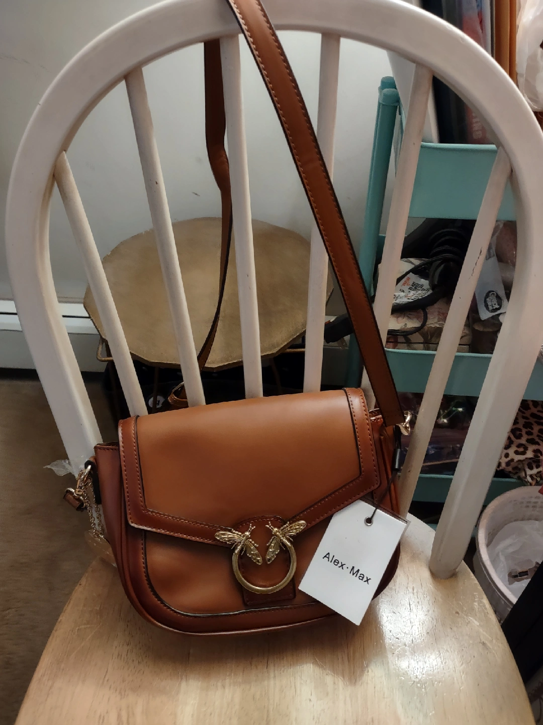 Selling a beautiful Alex Max crossbody bag in a lovely brown color! It's brand new and features a stylish design with a unique bee detail on the front. Perfect for adding a touch of elegance to any outfit